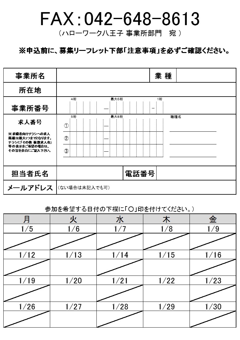 【参加企業募集】1月開催 八王子・日野のハロワ面接会&個別説明会