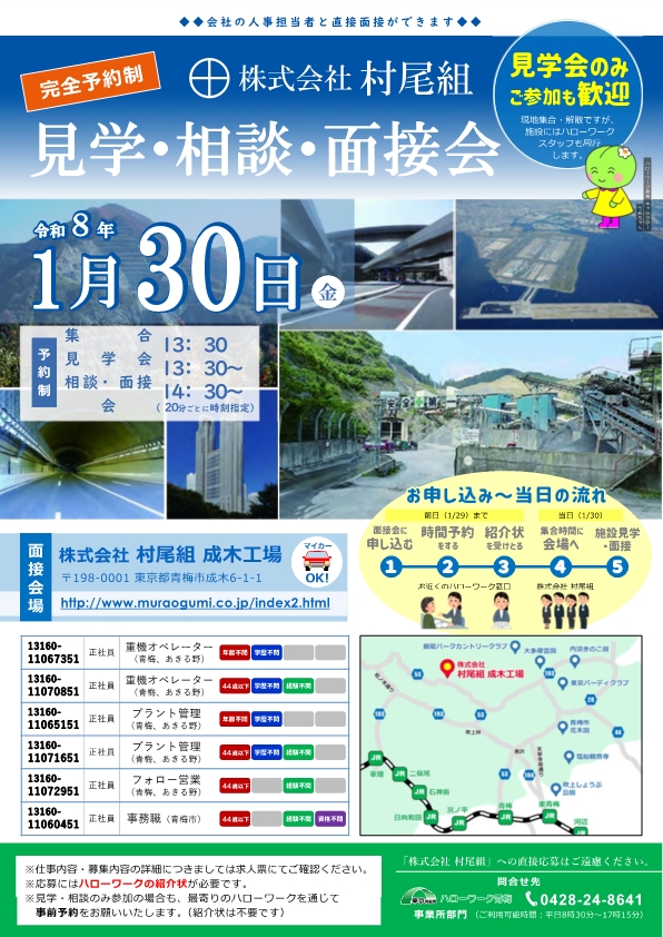 - 株式会社村尾組(青梅市成木6-1-1 マイカーでの参加可能)