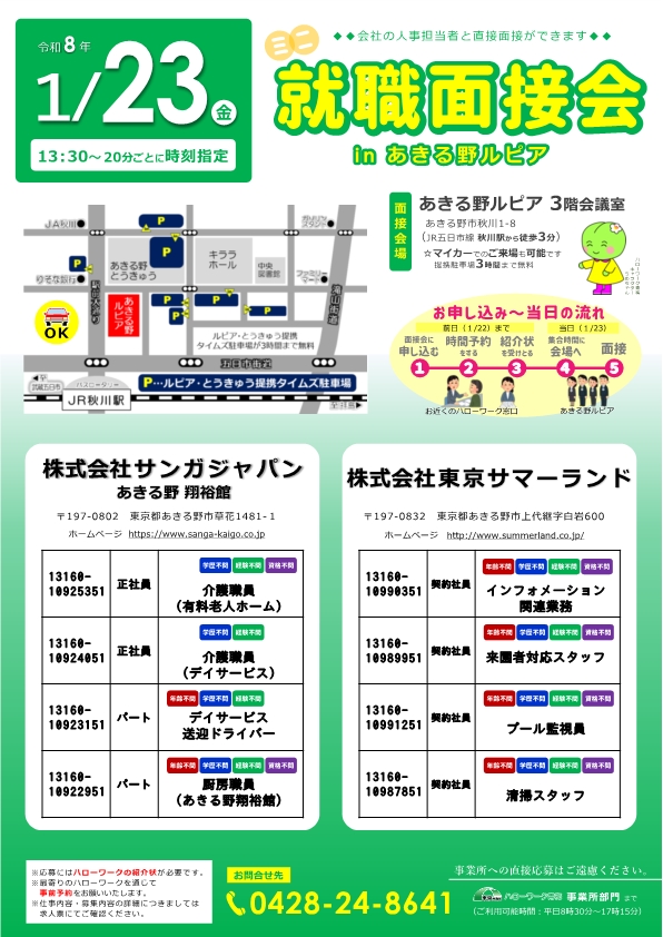 ミニ就職面接会inあきる野ルピアのお知らせ