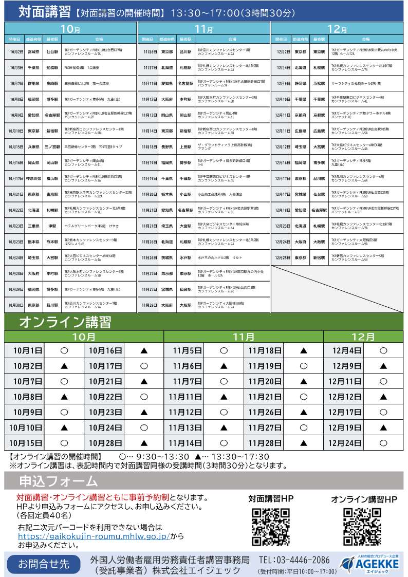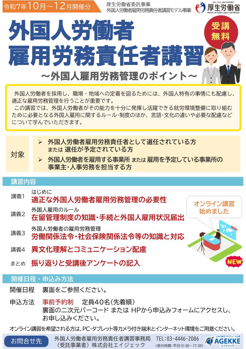 外国人労働者雇用労務責任者講習(令和7年10月~12月開催分)