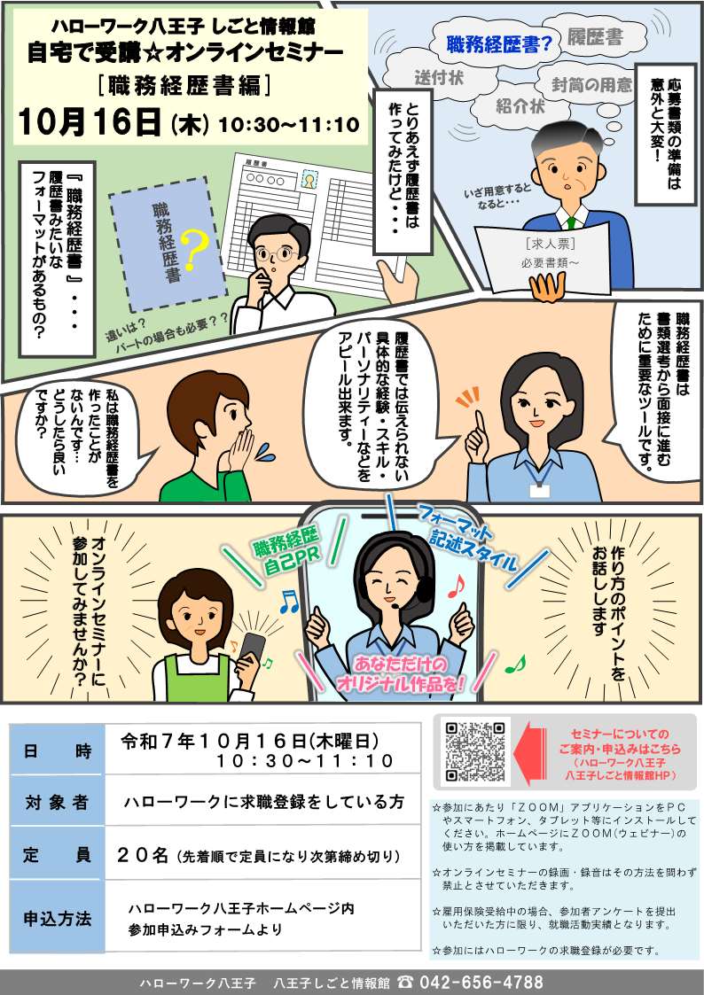 【八王子しごと情報館】オンラインセミナー[職務経歴書編]
