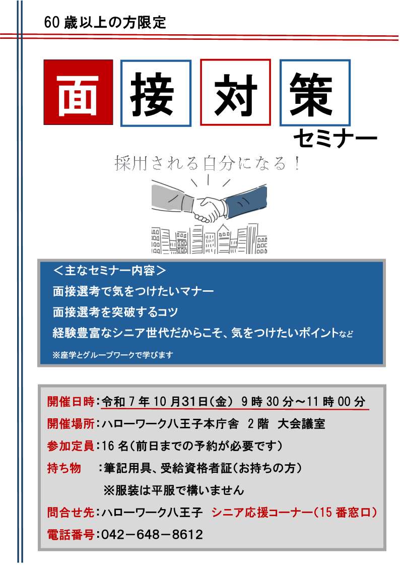 面接選考で気をつけたいマナーなど、60歳以上の方が面接選考を受ける際にチェックしておきたいことを座学とグループワークで学びます。