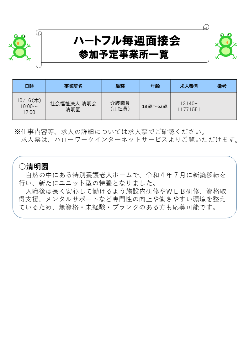 ◆介護、看護、保育分野のお仕事を対象とした「ハートフル毎週面接会」を開催しています。