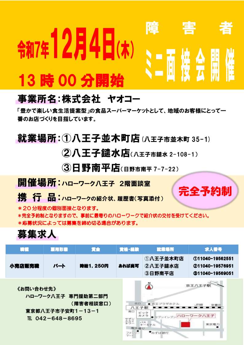 障害者向けミニ面接会(株式会社 ヤオコー)