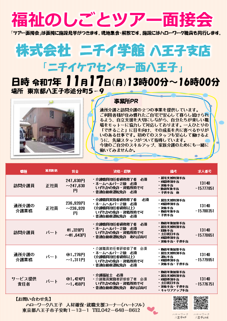福祉のしごとツアー面接会(株式会社 ニチイ学館八王子支店「ニチイケアセンター西八王子」)
