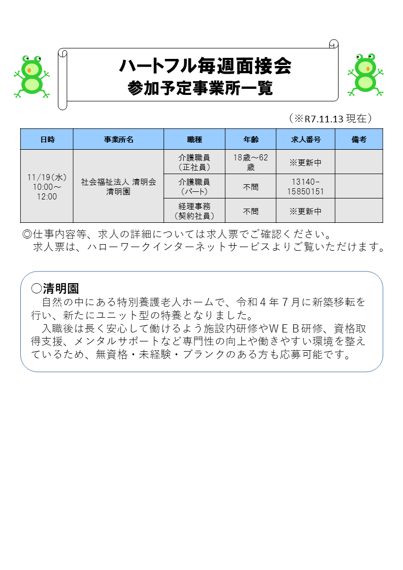 ◆介護、看護、保育分野のお仕事を対象とした「ハートフル毎週面接会」を開催しています。