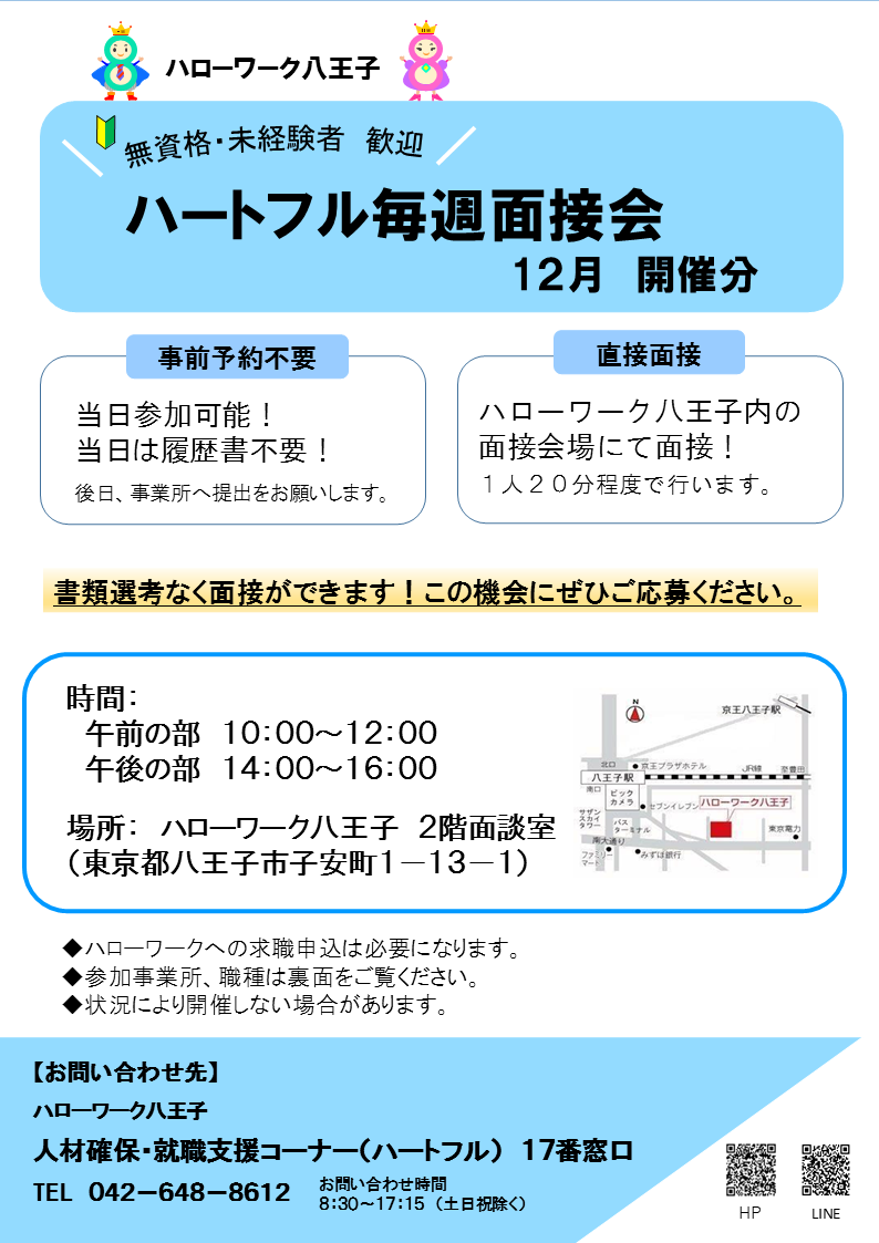 - ハローワーク八王子 2階面談室(八王子市子安町1-13-1)