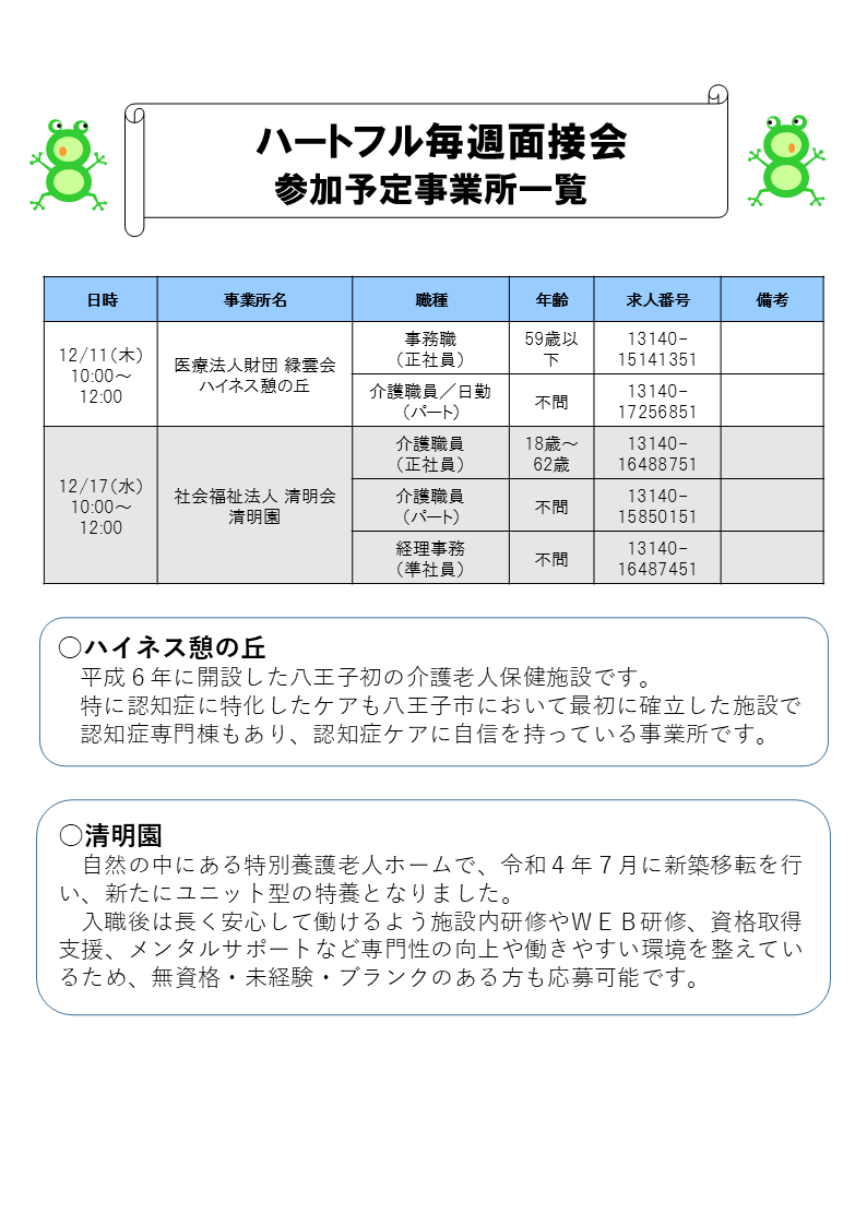 ◆介護、看護、保育分野のお仕事を対象とした「ハートフル毎週面接会」を開催しています。