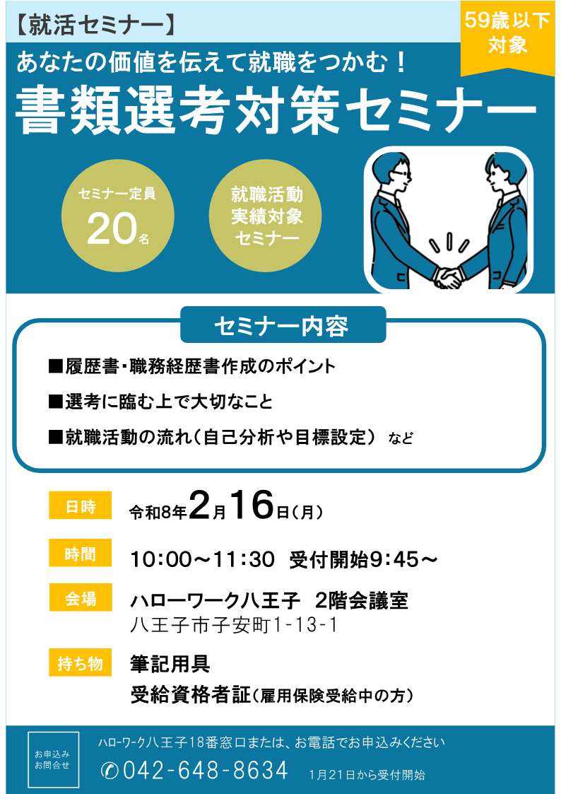 - ハローワーク八王子 2階会議室 (八王子市子安町1-13-1)