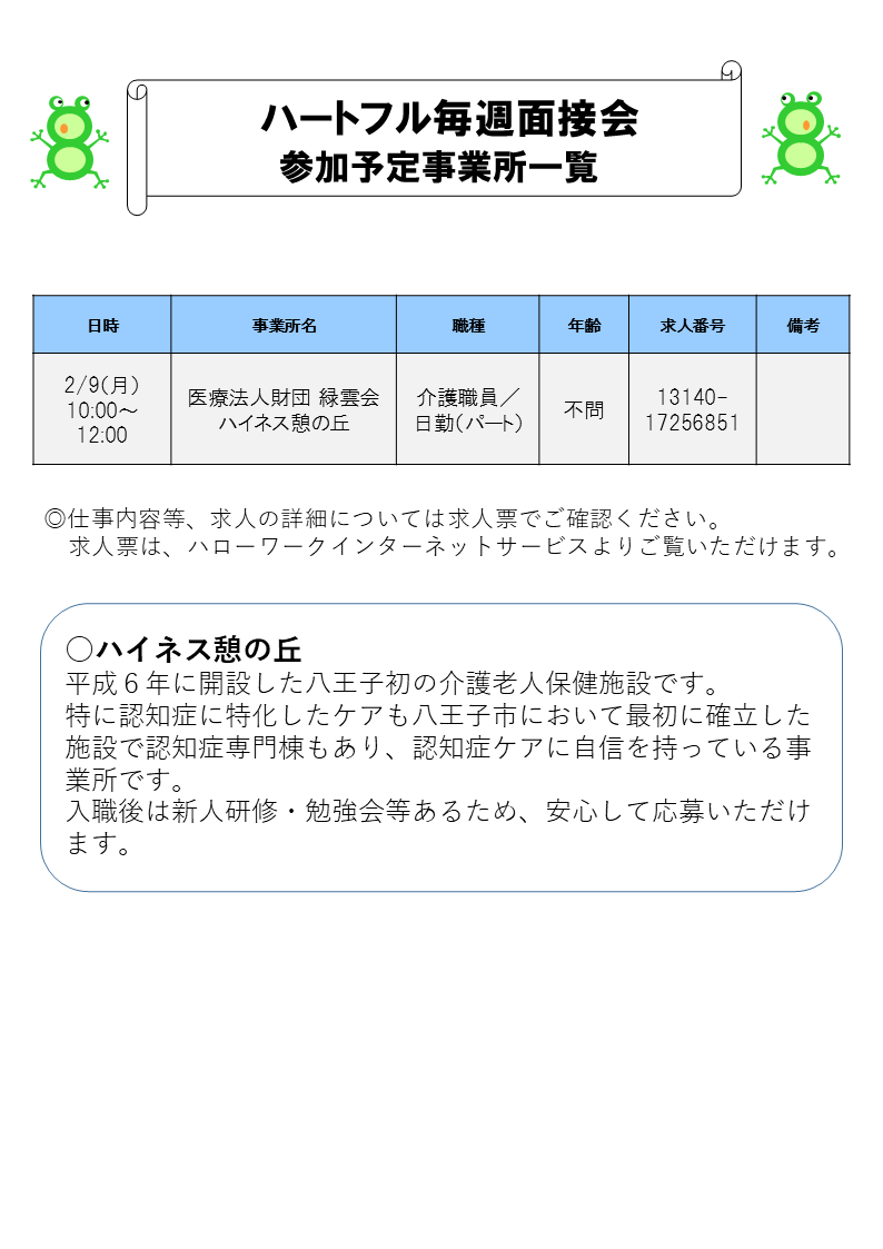 - ハローワーク八王子 2階面談室(八王子市子安町1-13-1)