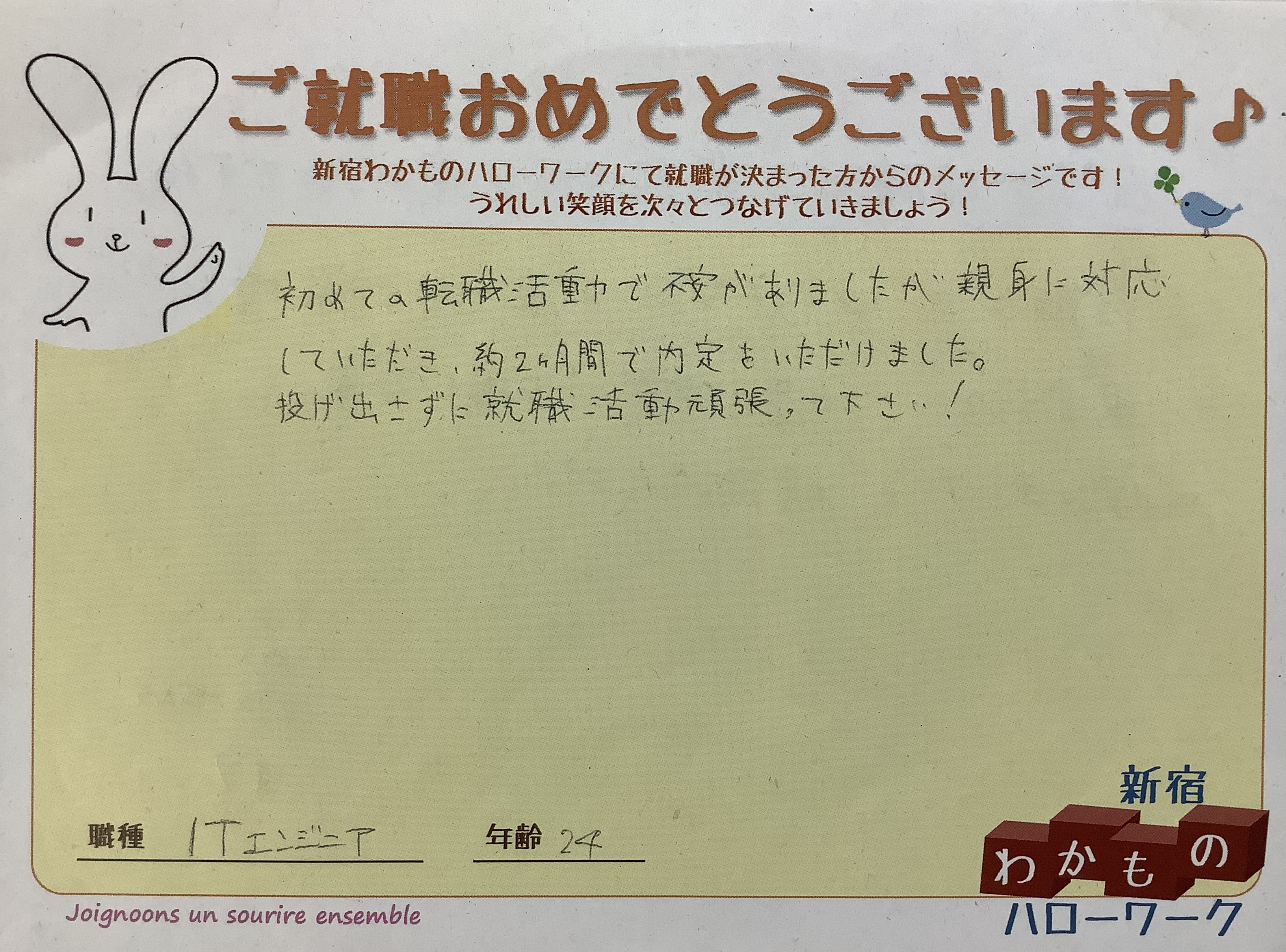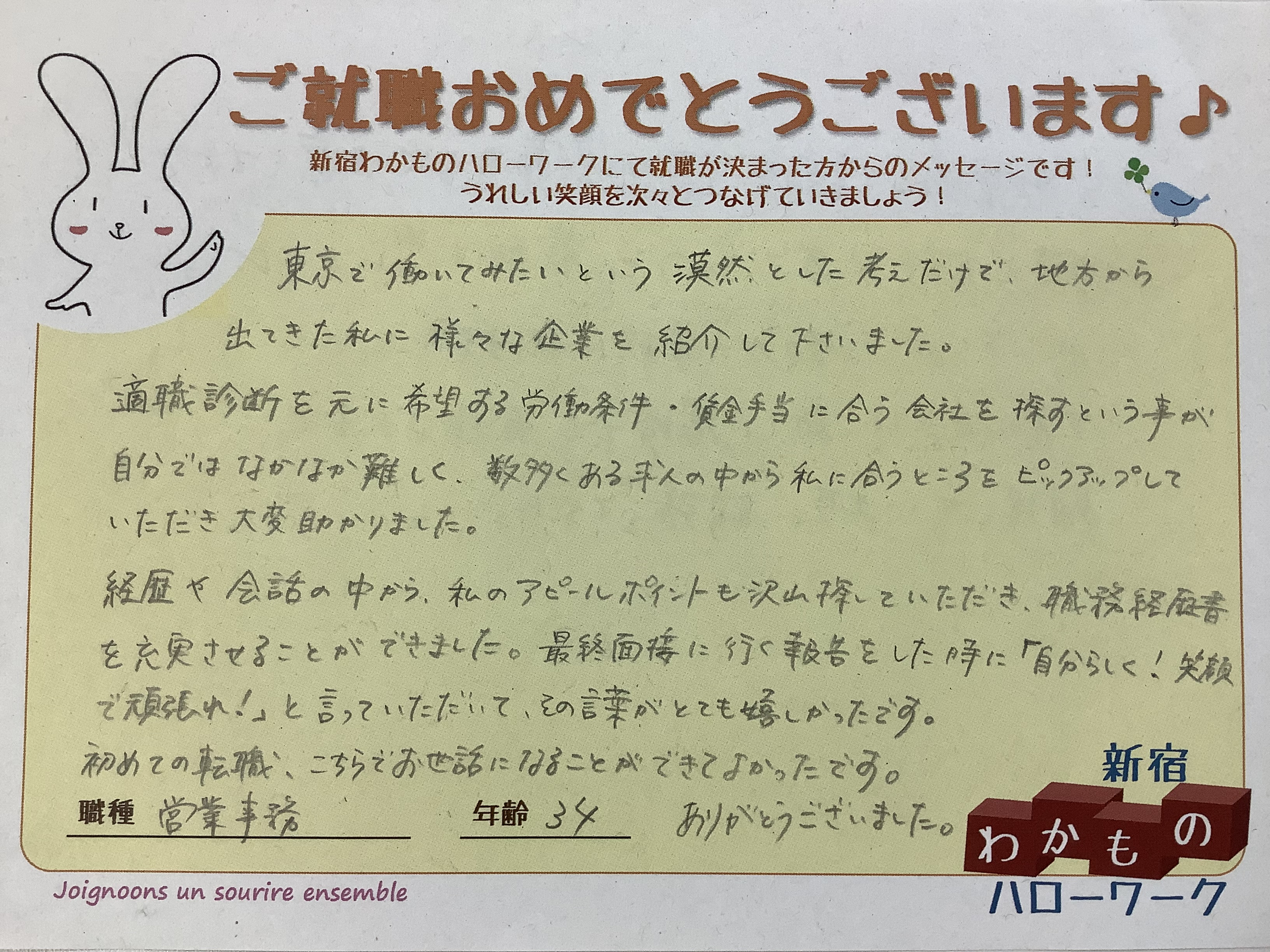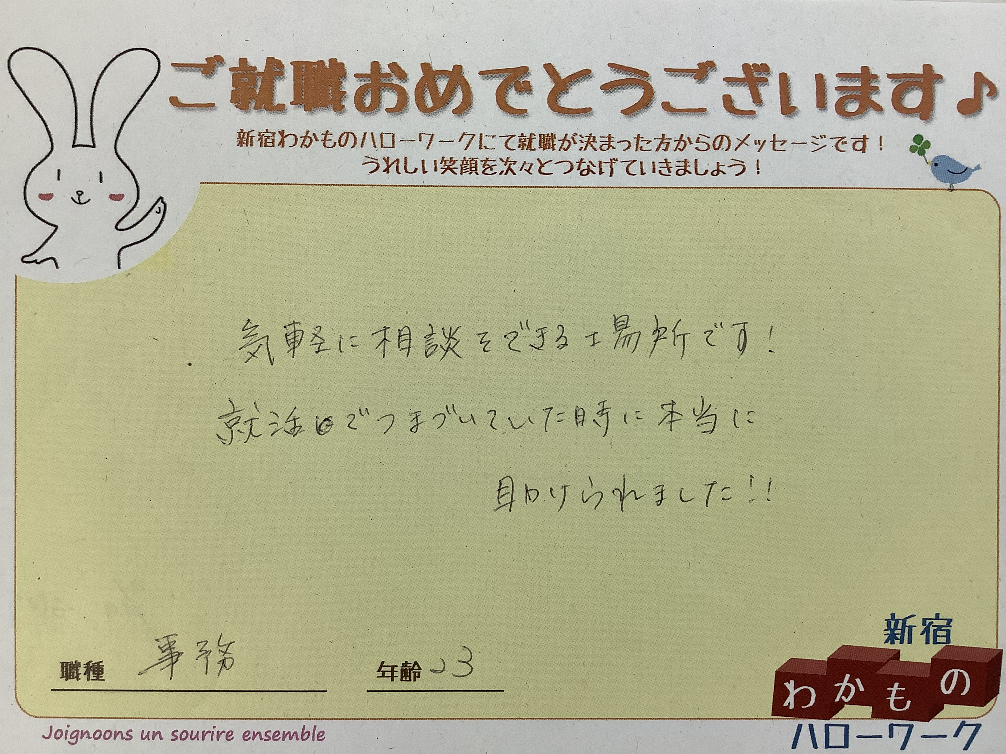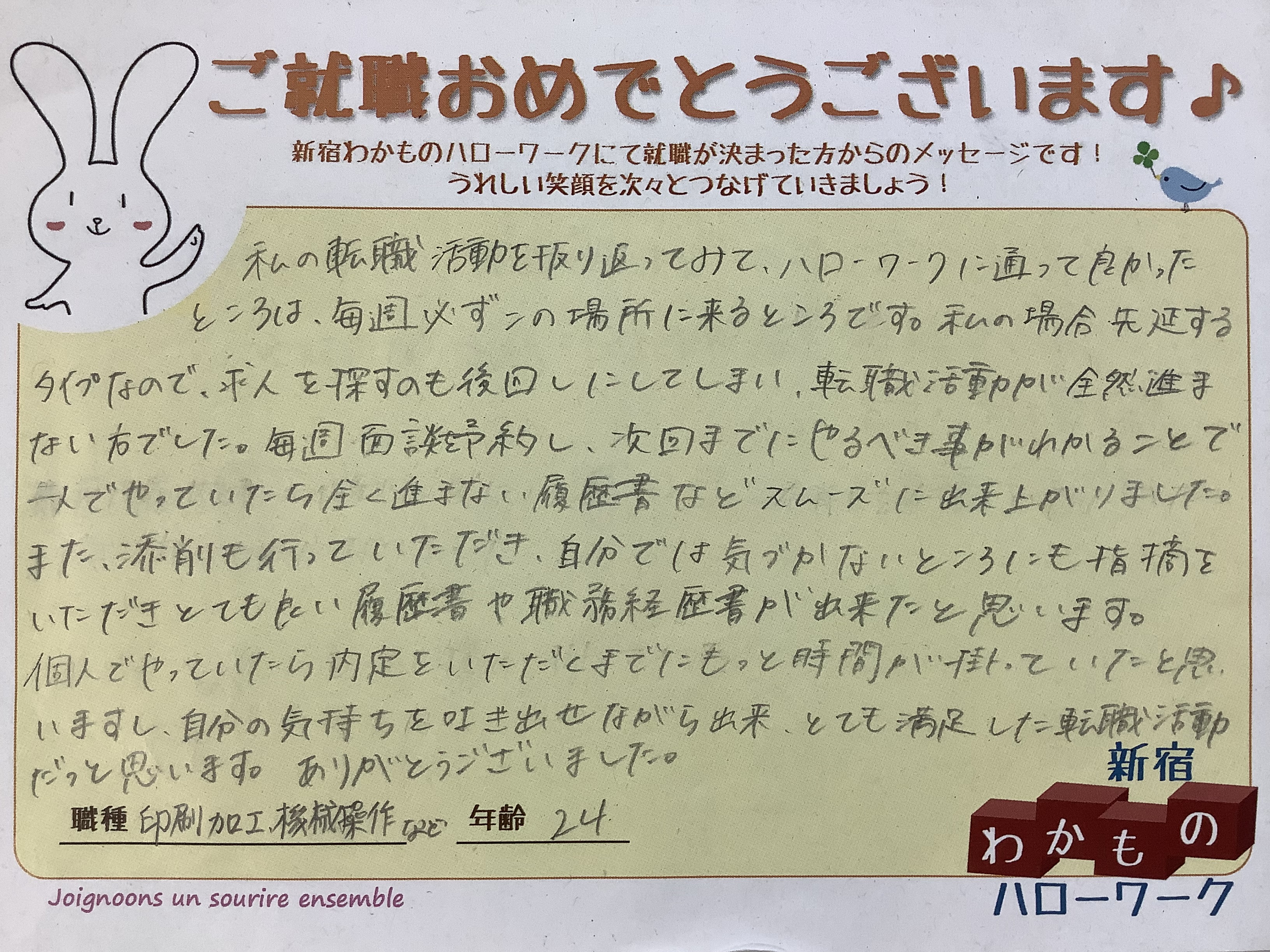 - ハローワーク新宿 新宿わかものハローワーク 就職が決まった方からのメッセージ