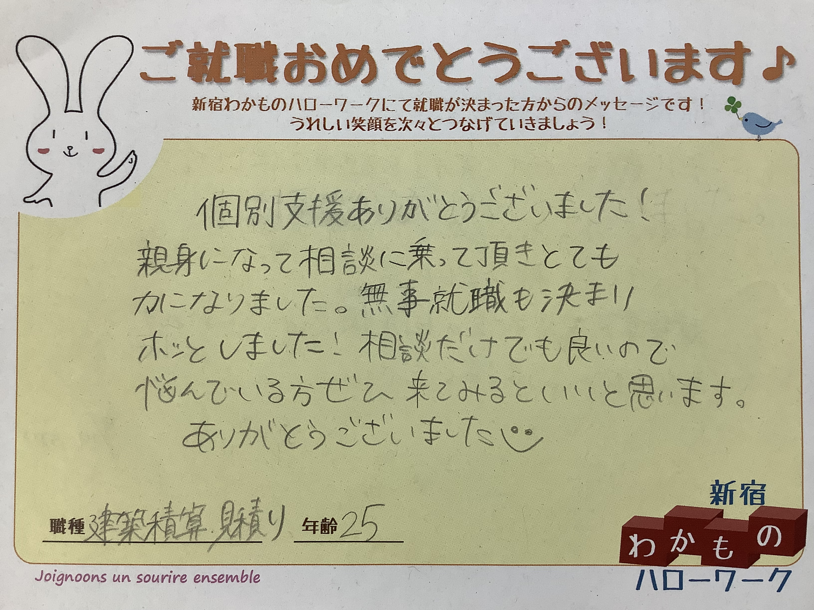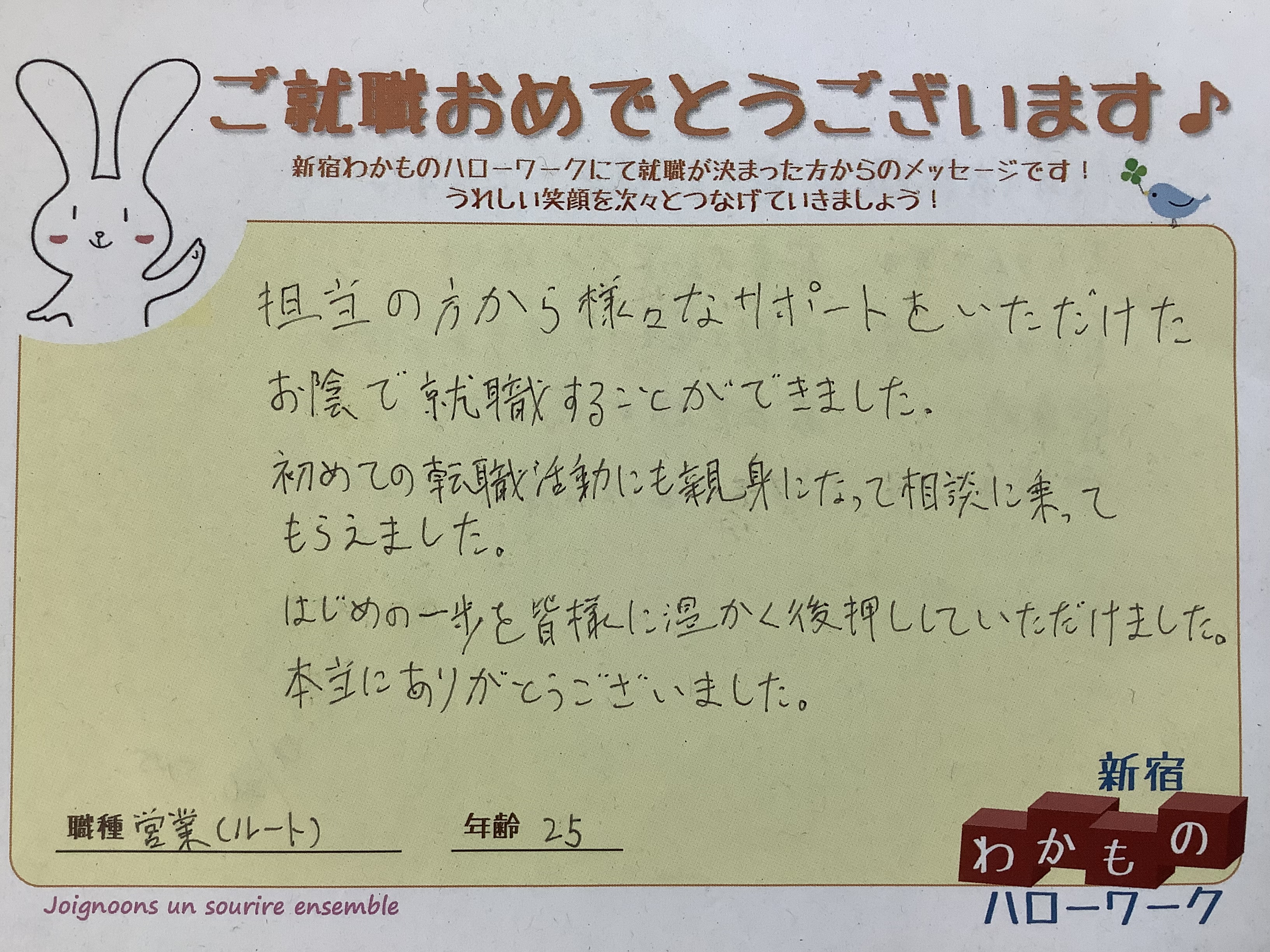 ハローワーク新宿 新宿わかものハローワーク 就職が決まった方からのメッセージ