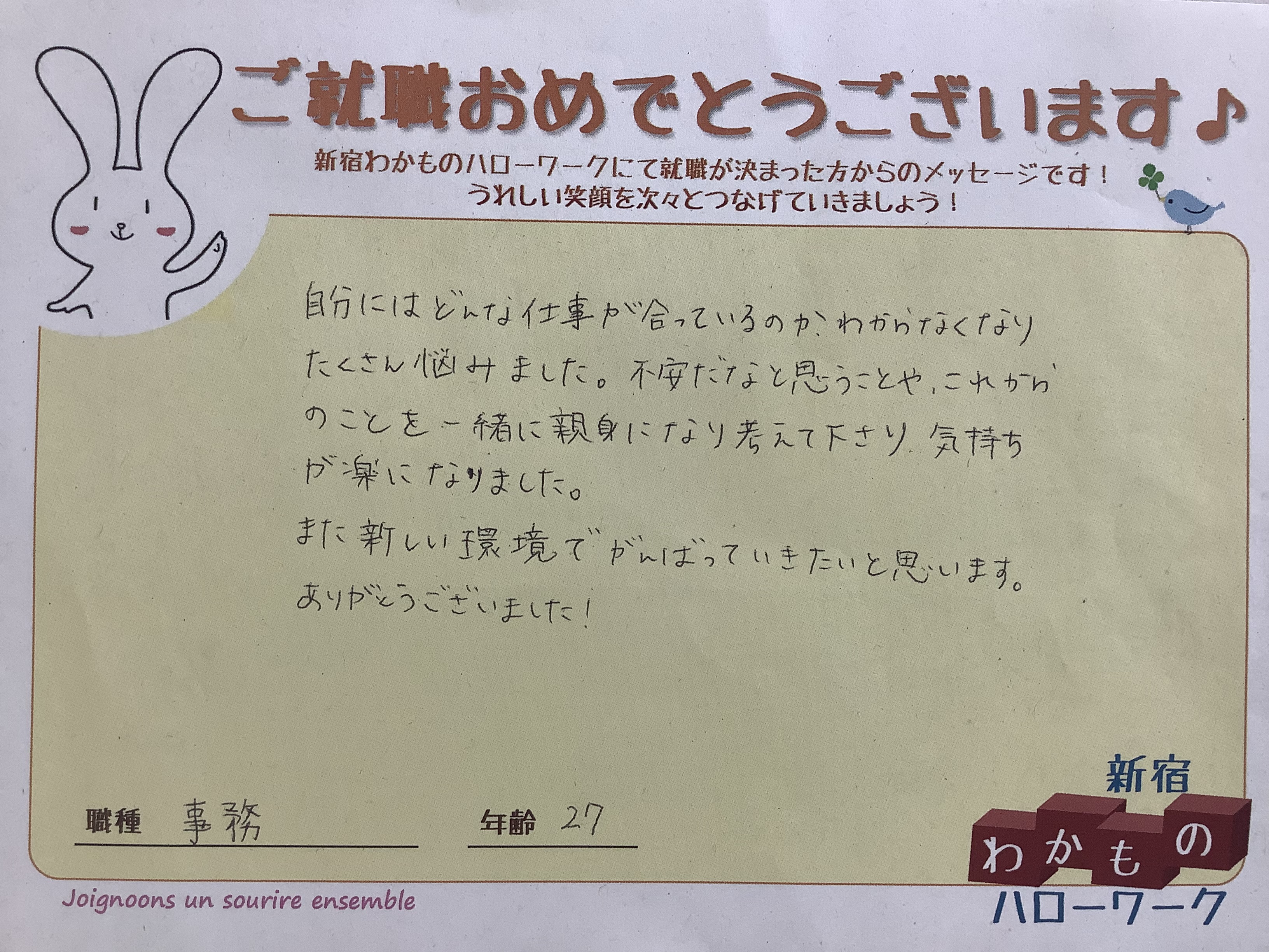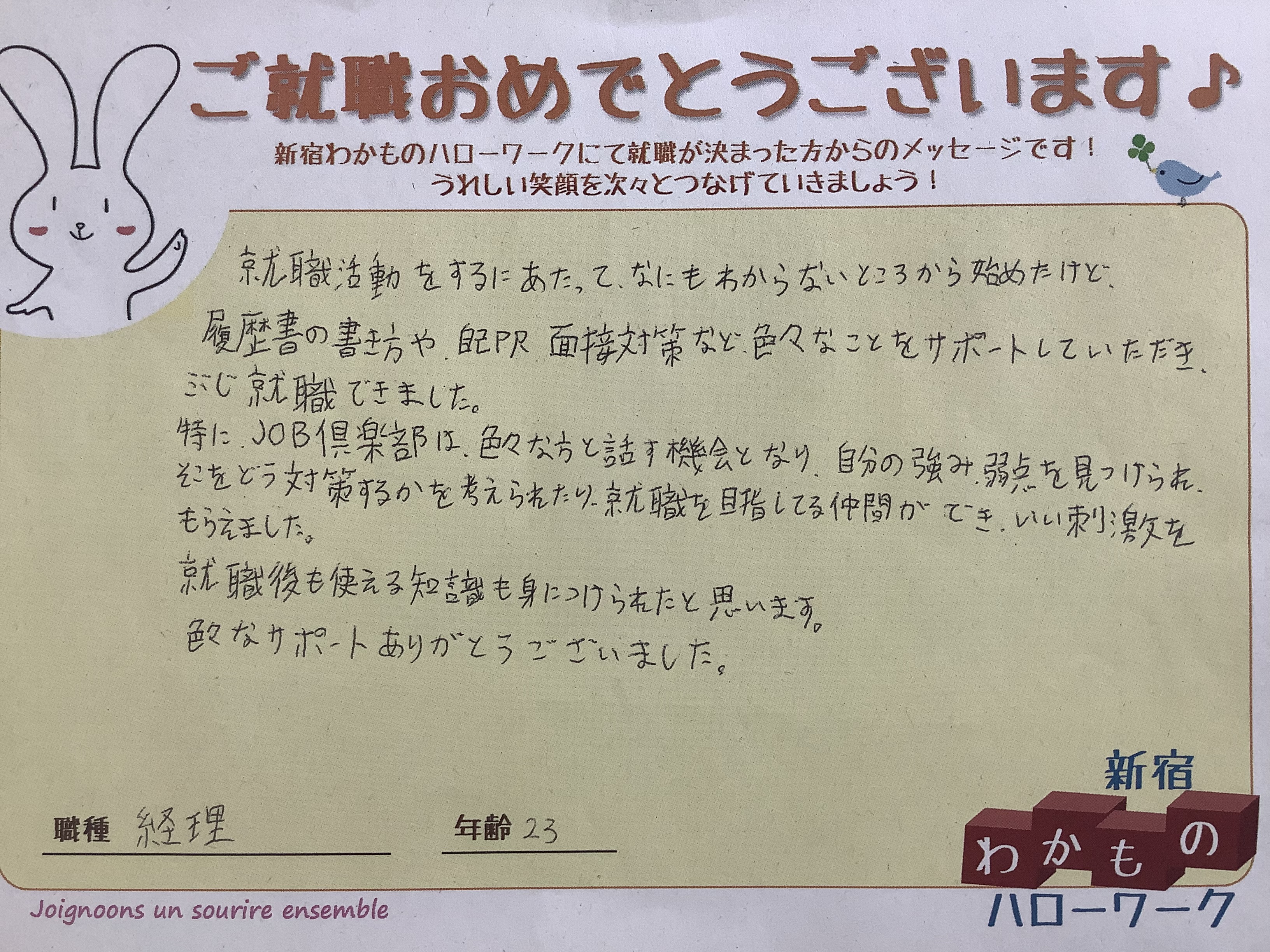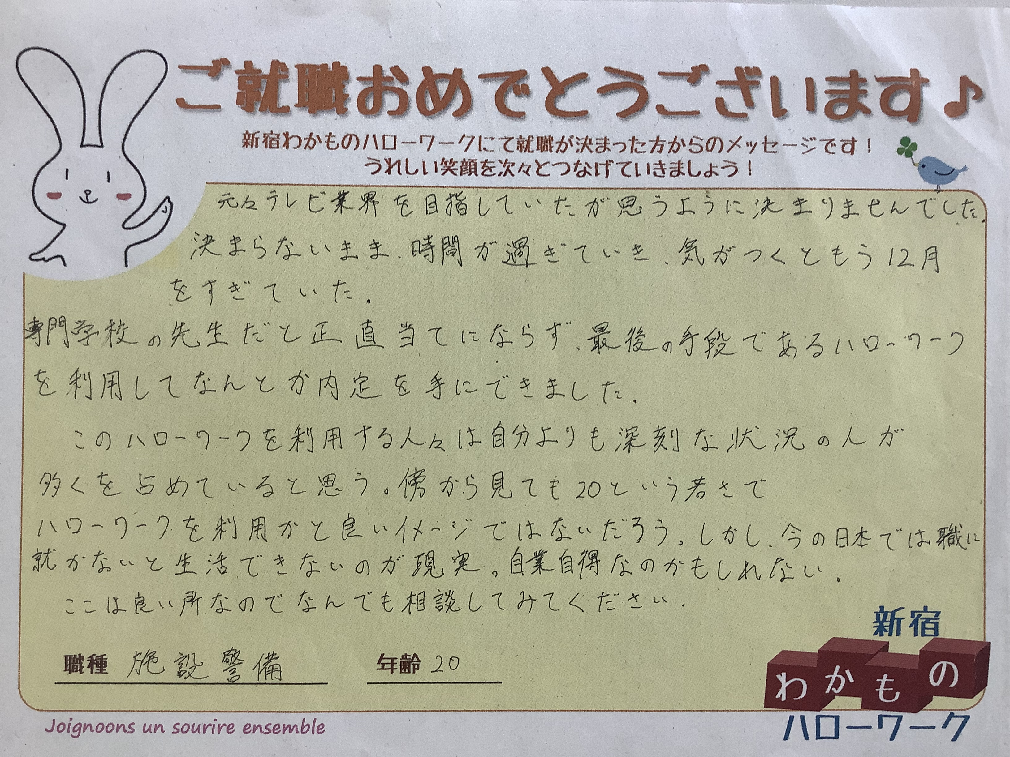 - ハローワーク新宿 新宿わかものハローワーク 就職が決まった方からのメッセージ