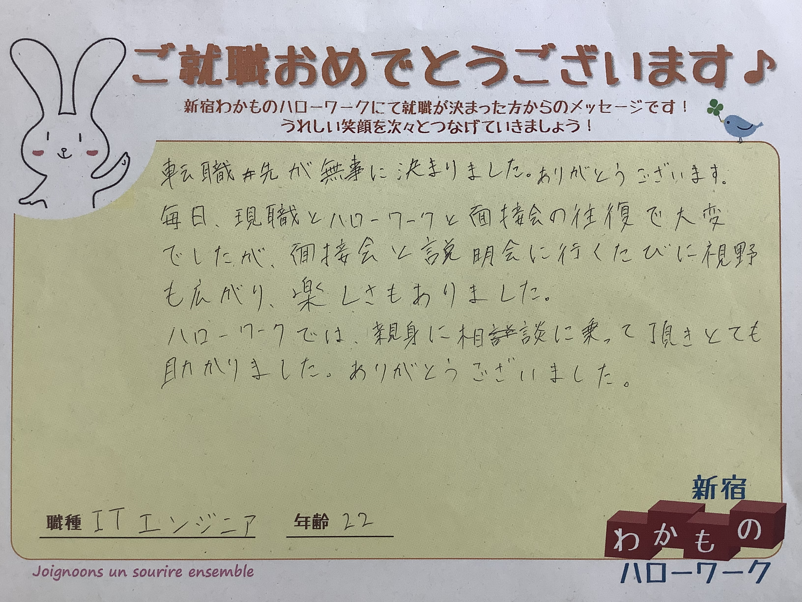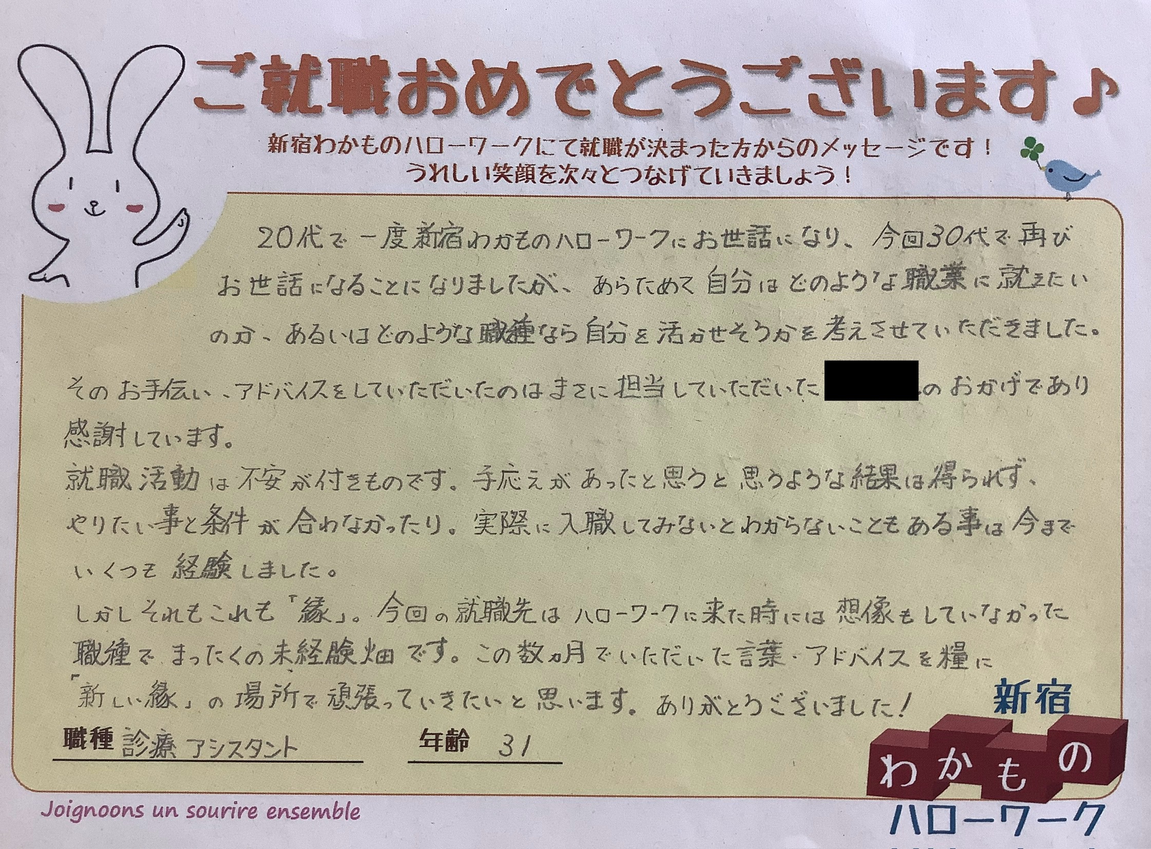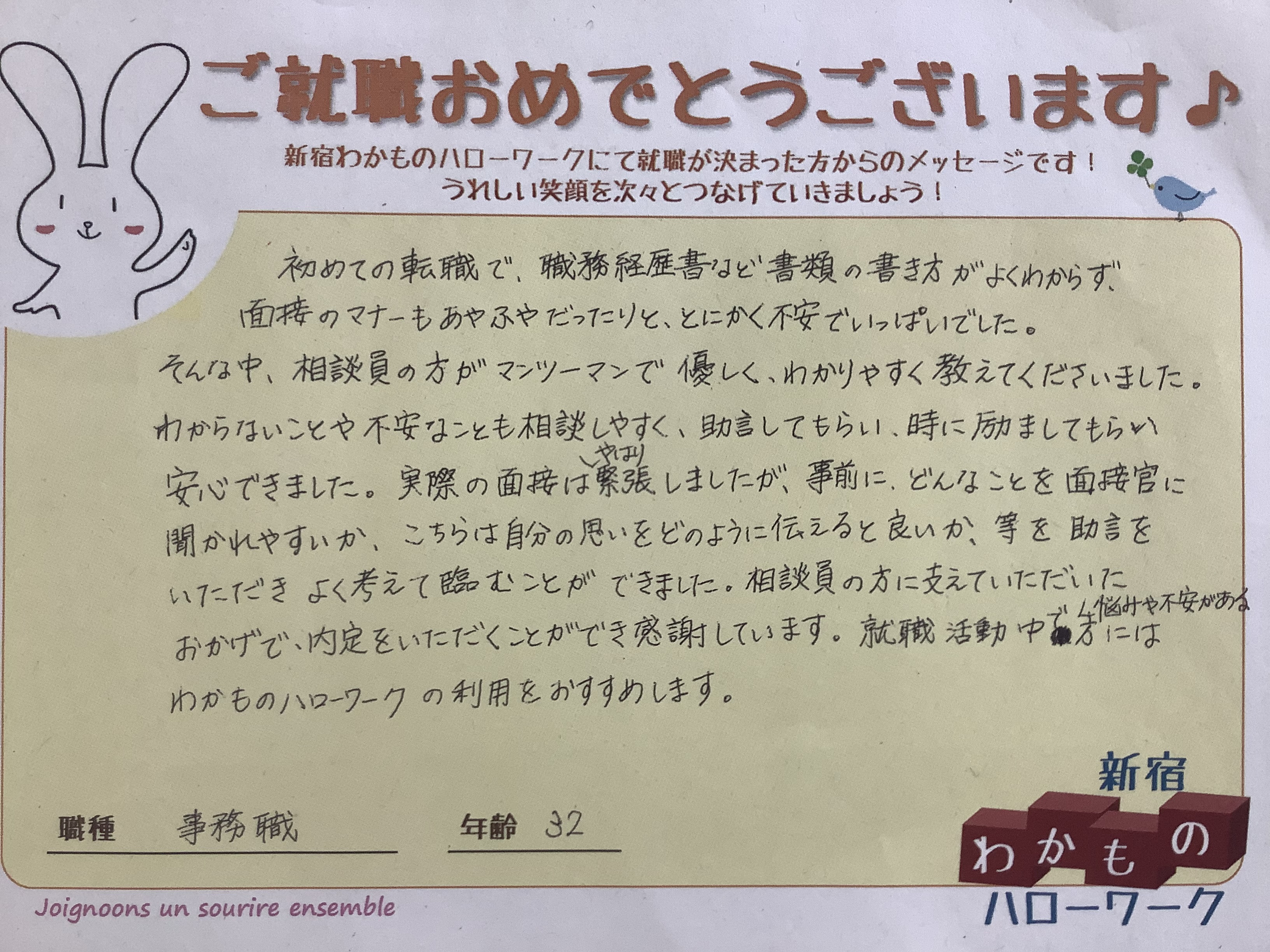 - ハローワーク新宿 新宿わかものハローワーク 就職が決まった方からのメッセージ