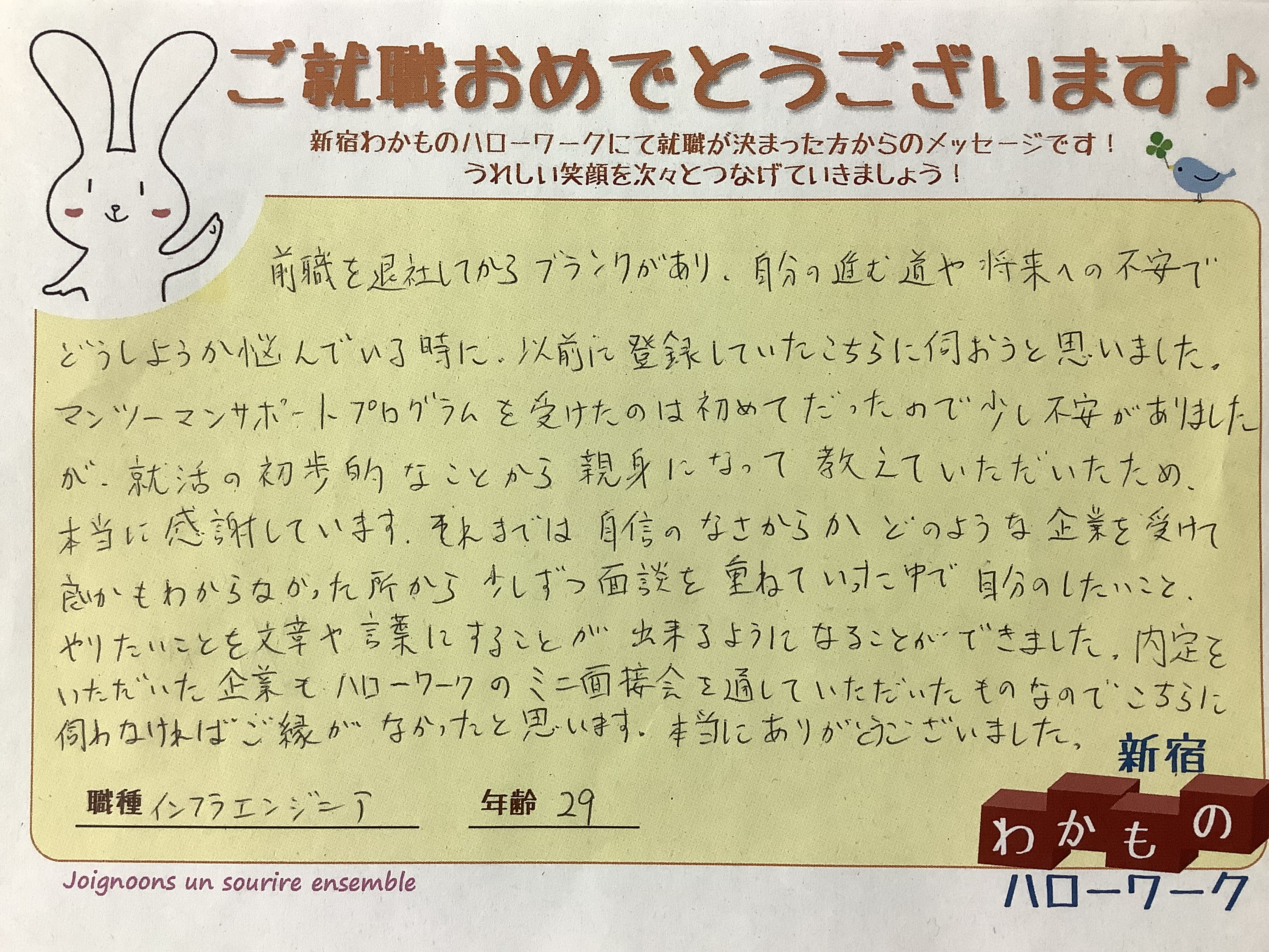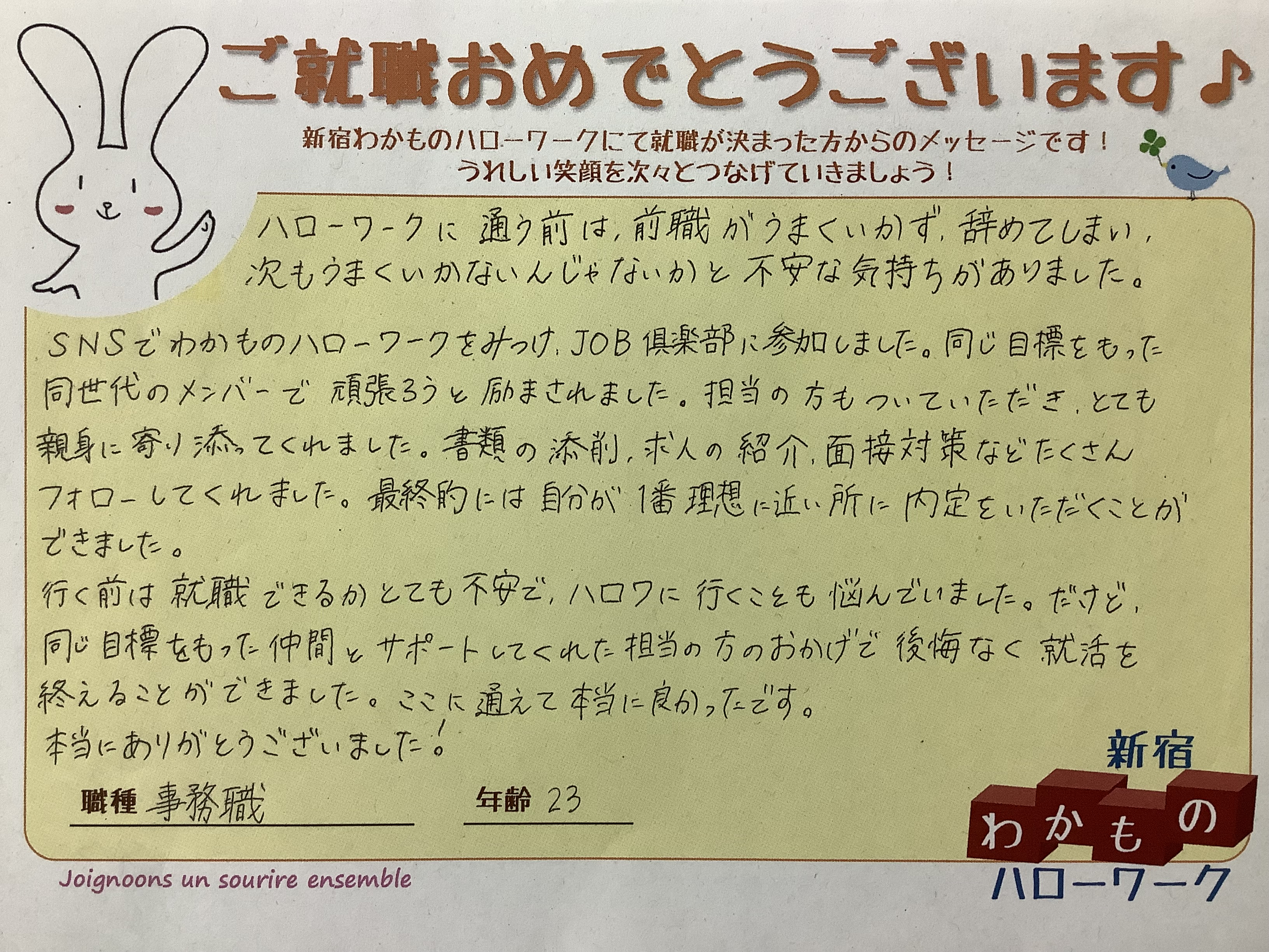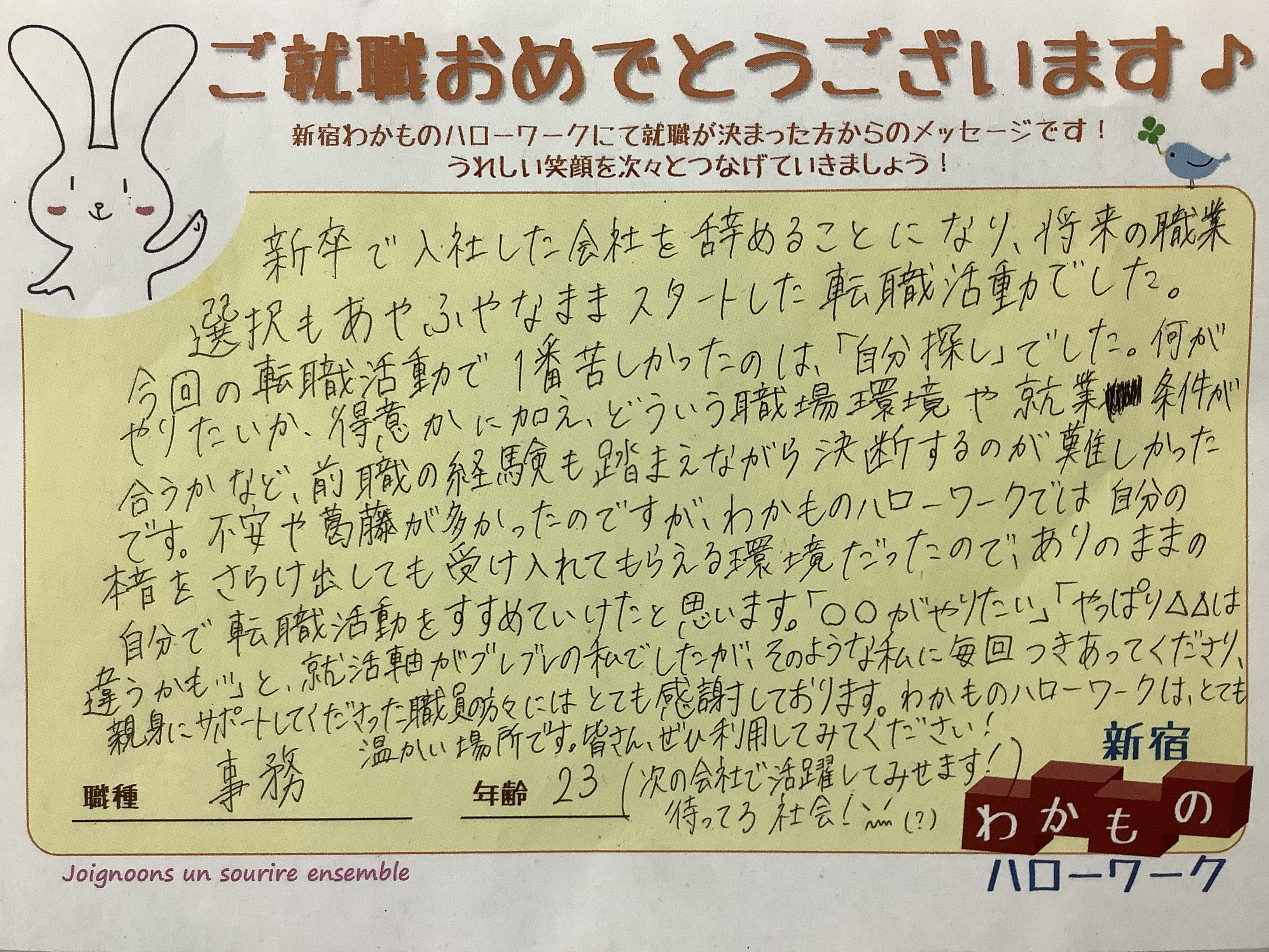- ハローワーク新宿 新宿わかものハローワーク 就職が決まった方からのメッセージ