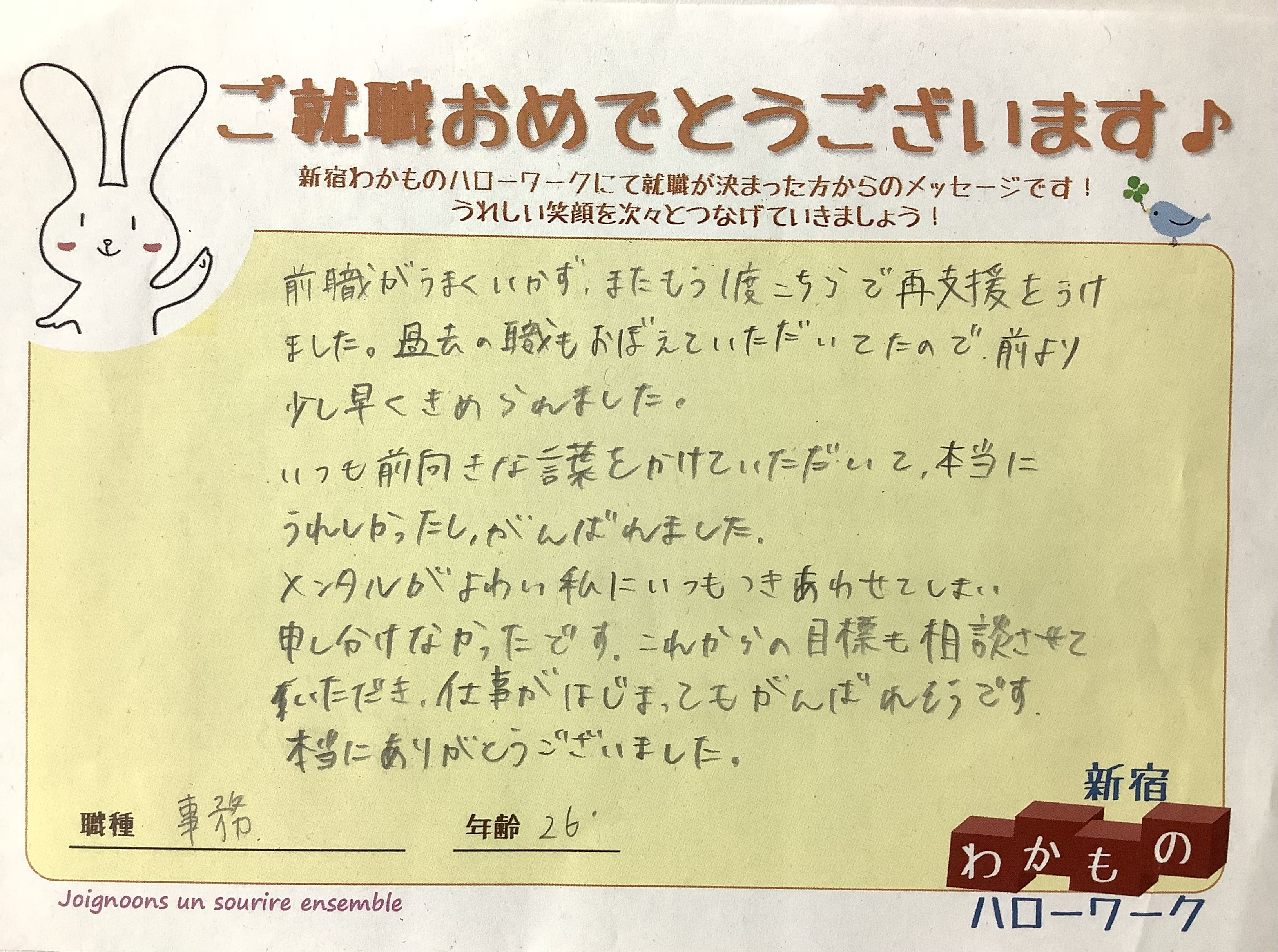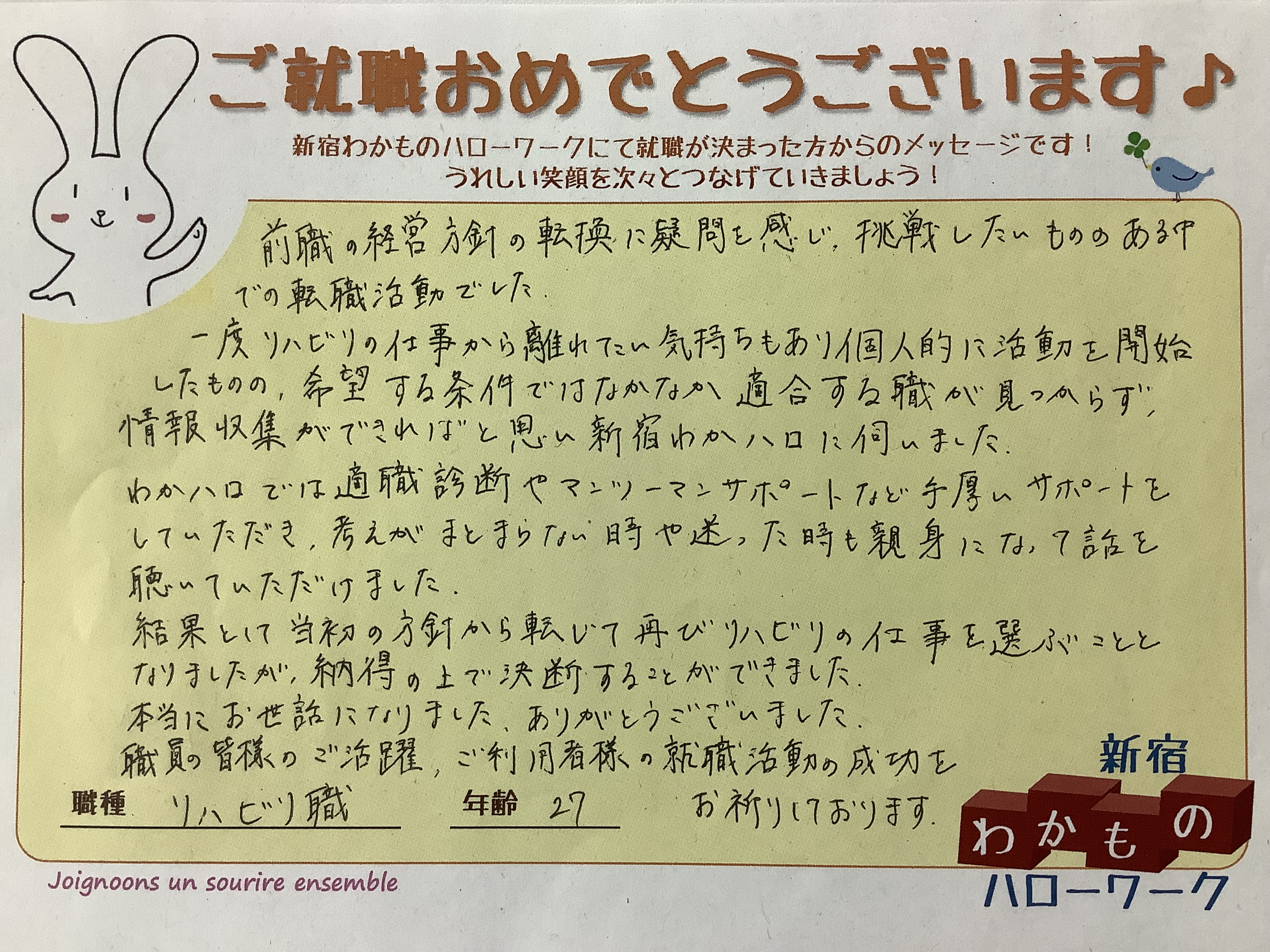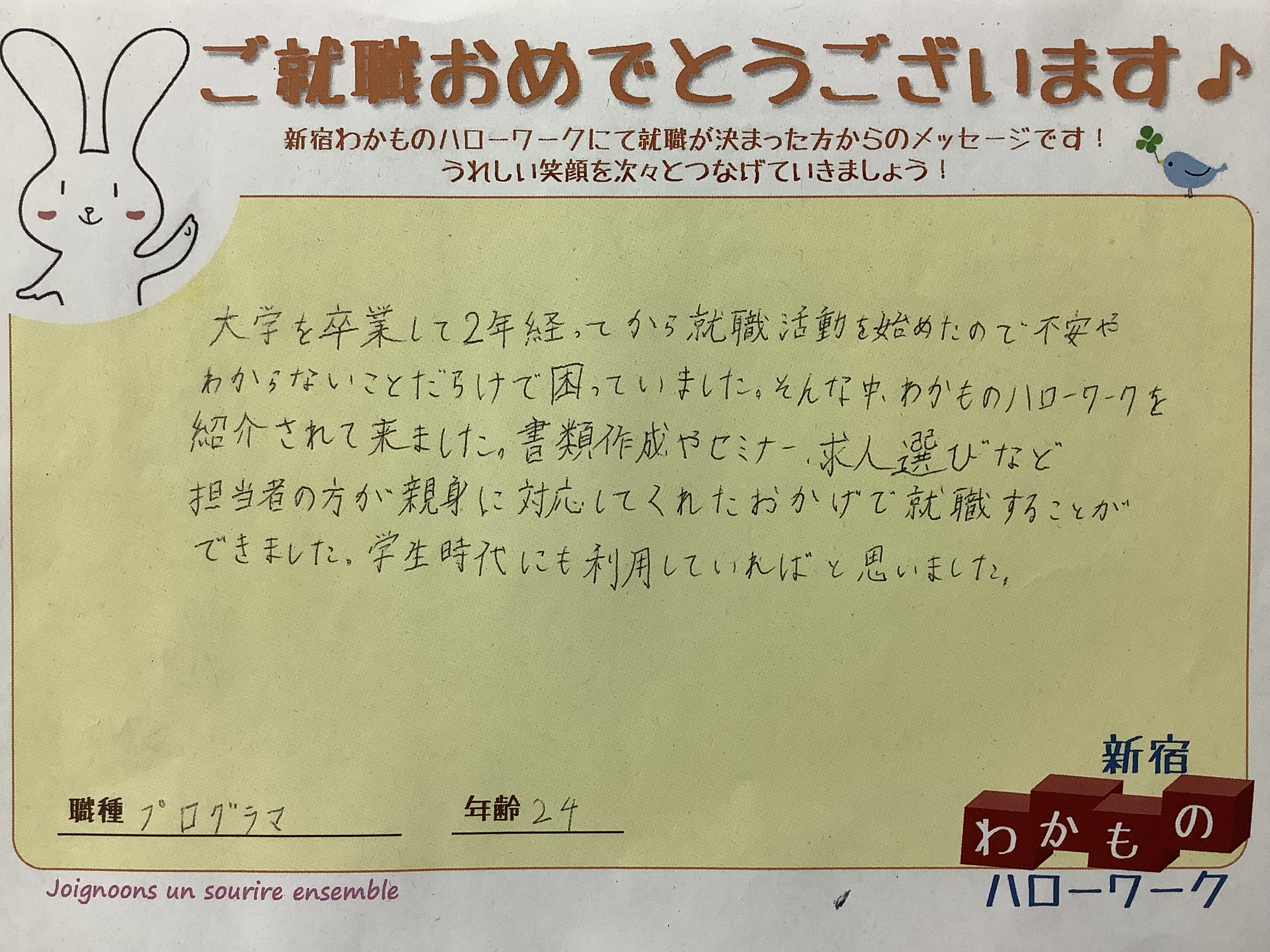 - ハローワーク新宿 新宿わかものハローワーク 就職が決まった方からのメッセージ