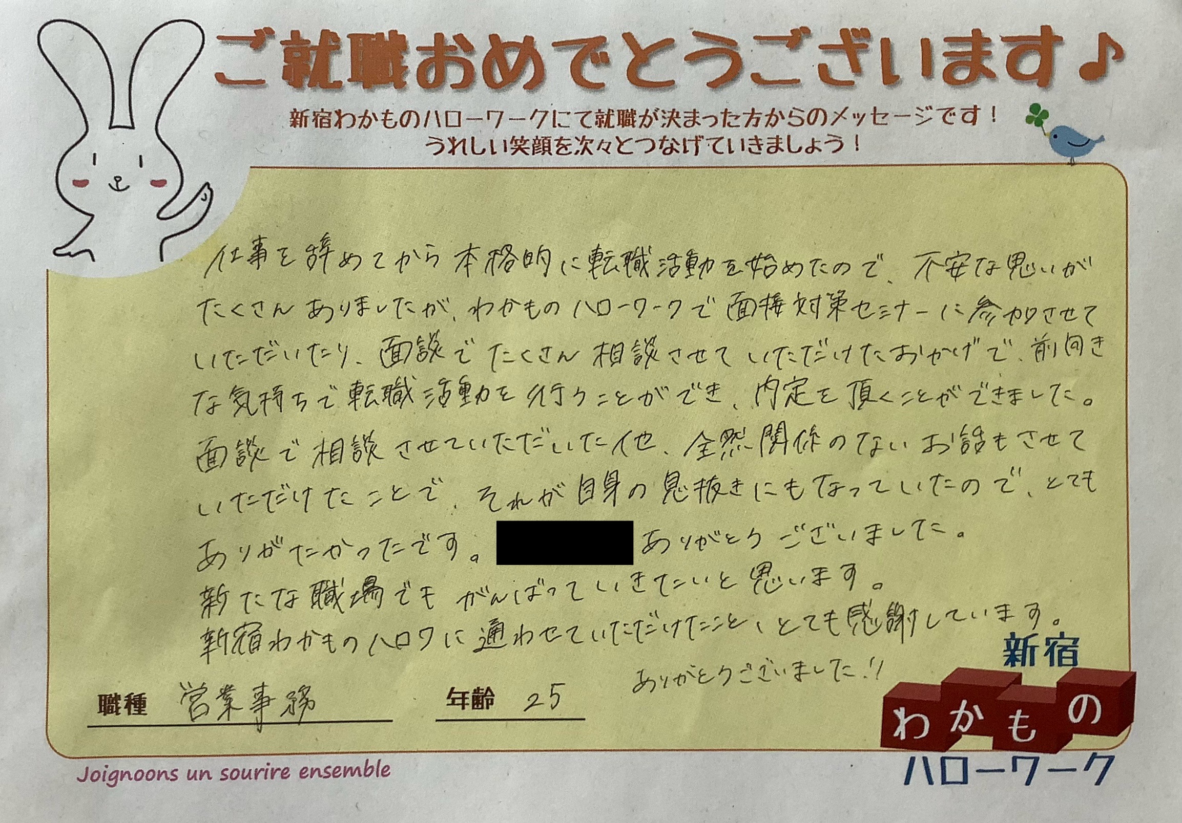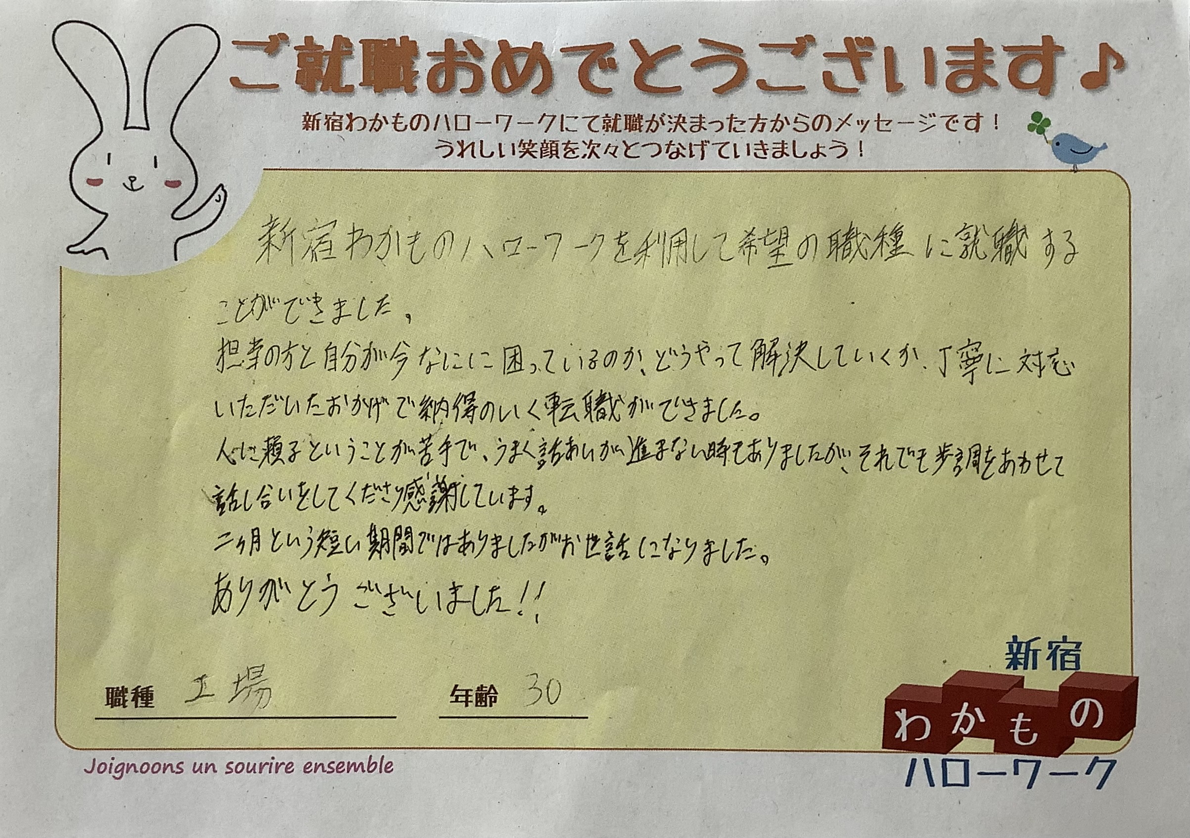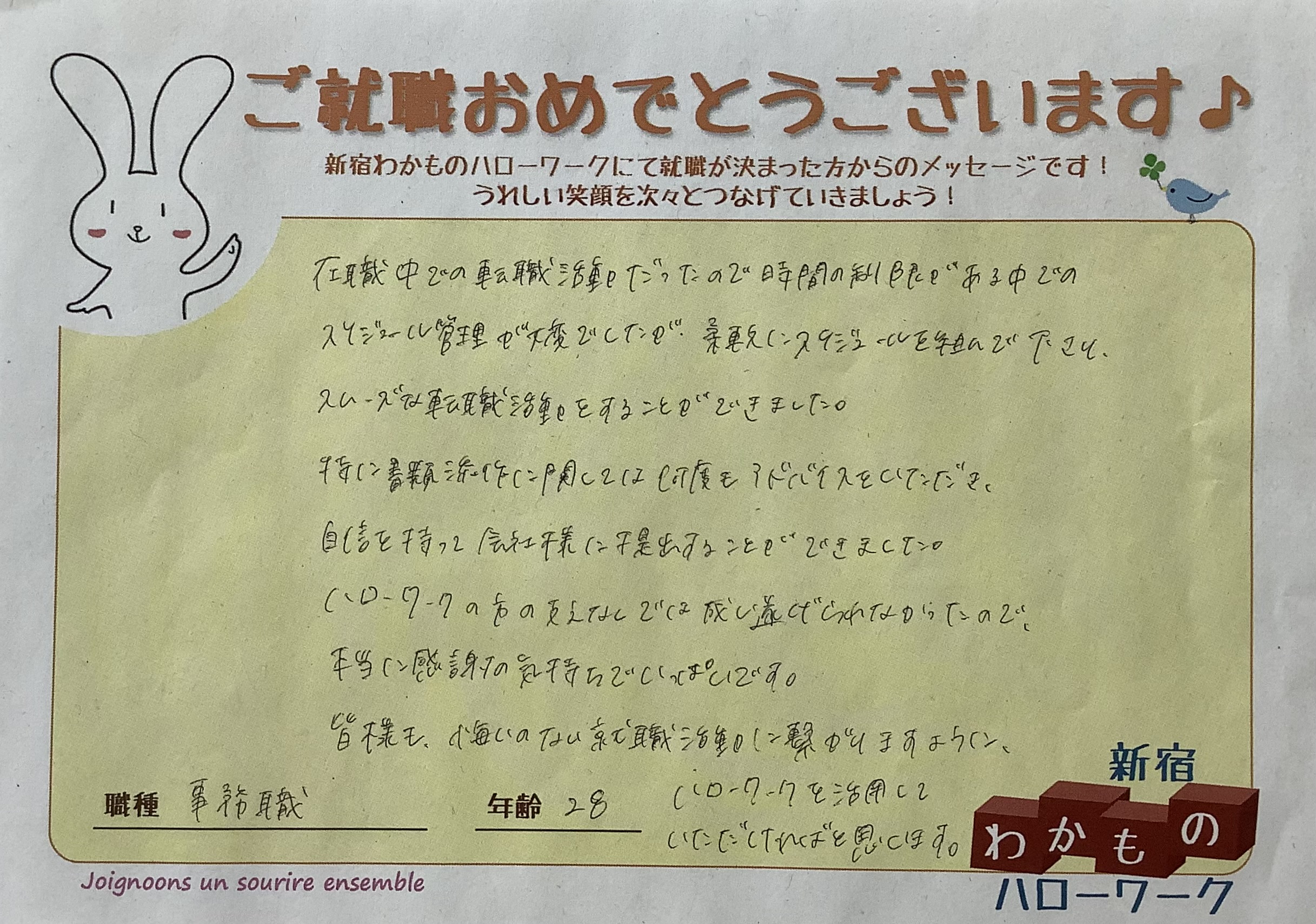 - ハローワーク新宿 新宿わかものハローワーク 就職が決まった方からのメッセージ