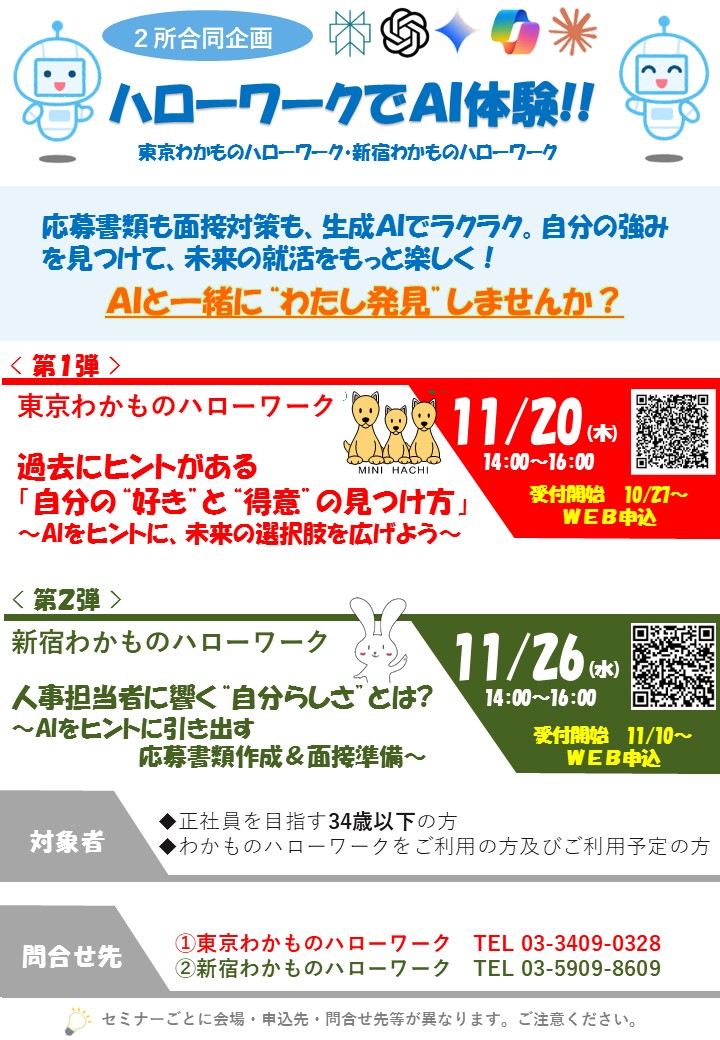 【申込方法】WEB申込 ⇒新宿わかハロHP ※11/10 10時~受付開始