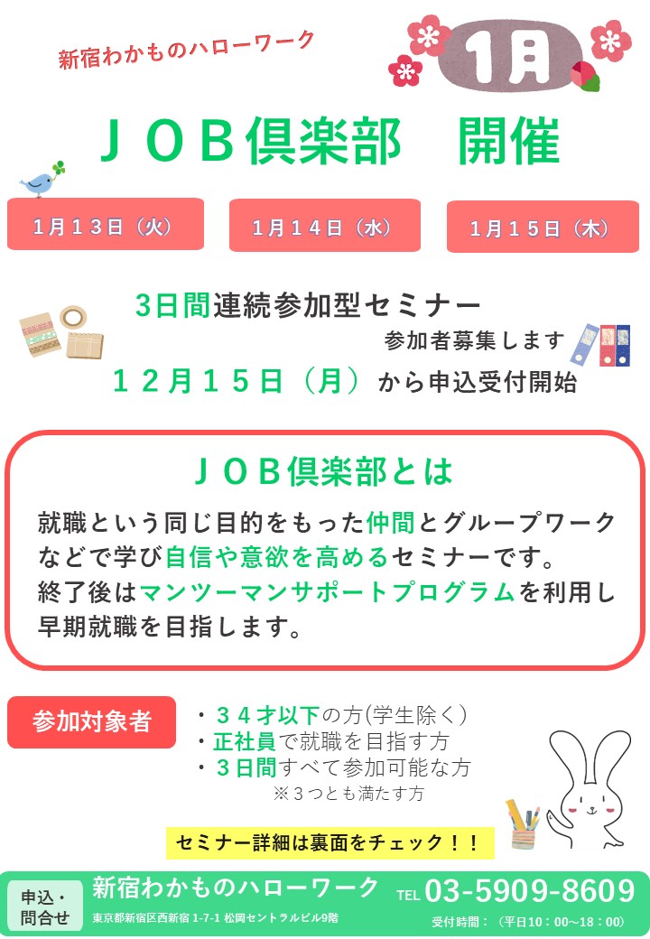 アクセス良好な<新宿わかものハローワーク>のミニ面接会に、ぜひご参加ください!