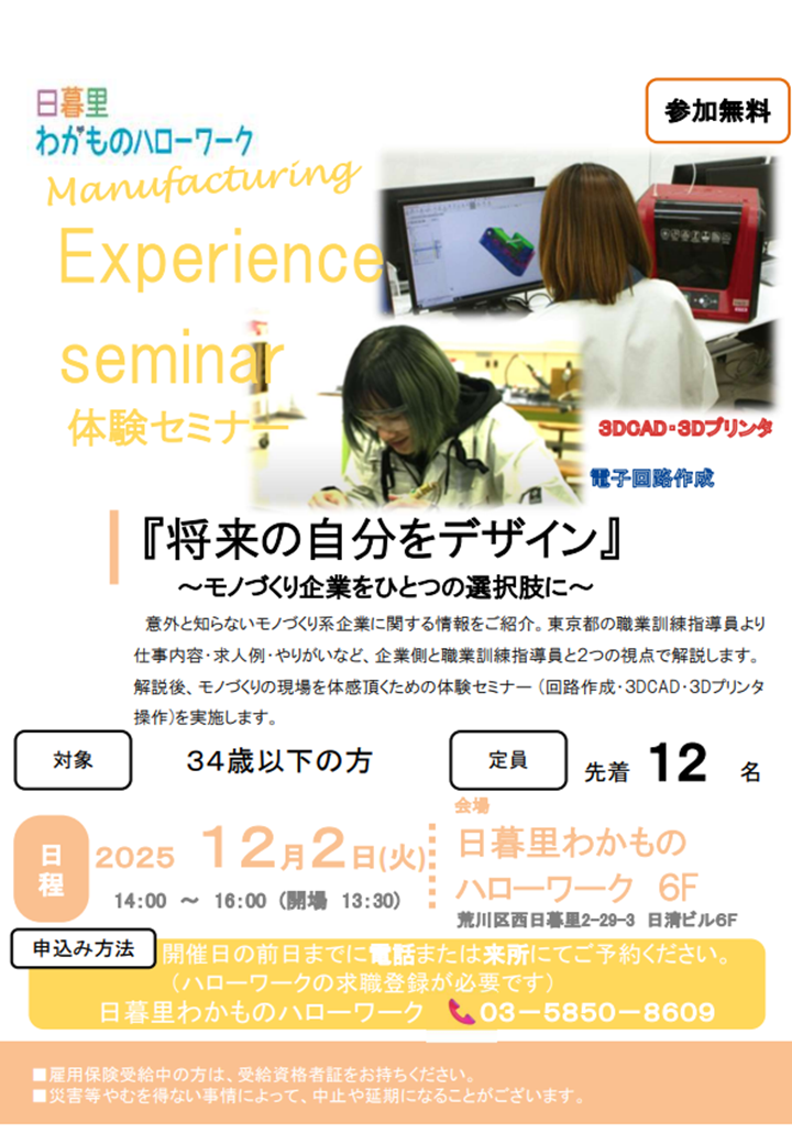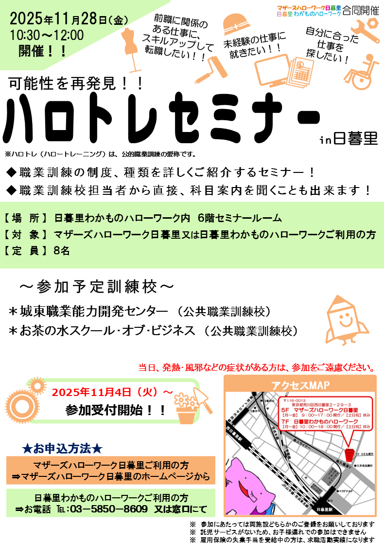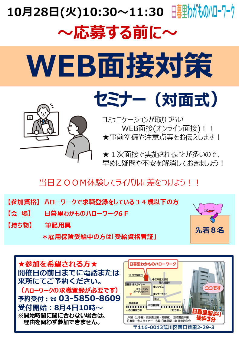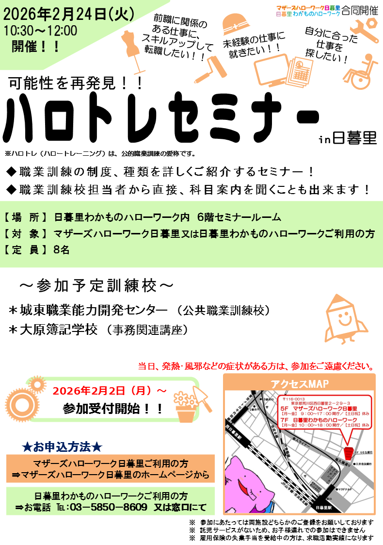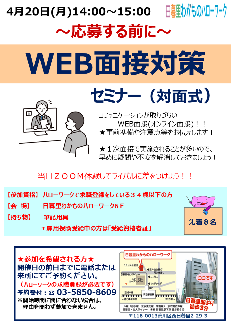 【場 所】日暮里わかものハローワーク 6Fセミナールーム