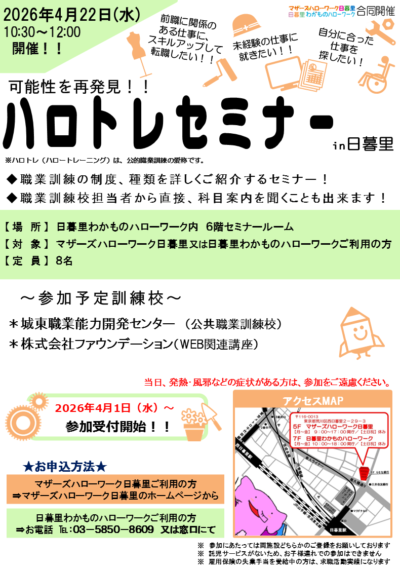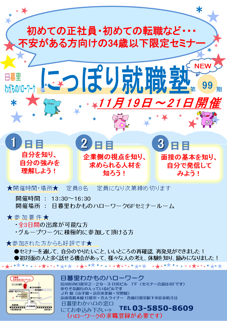 予約受付・お問い合わせ:日暮里わかものハローワーク