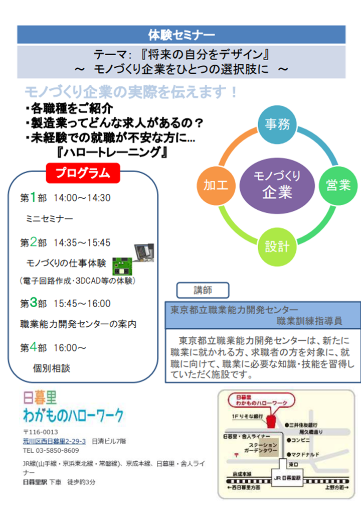【開催場所】日暮里わかものハローワーク 6Fセミナールーム