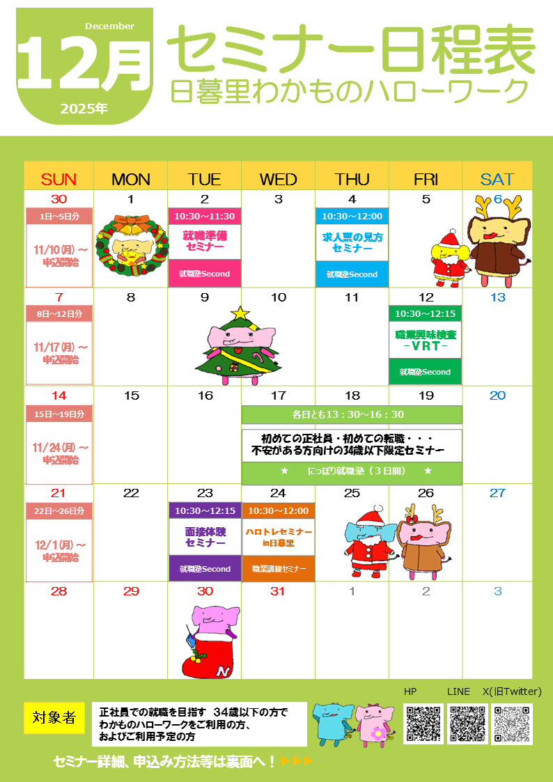 【持ち物】筆記用具(雇用保険受給中の方は受給資格者証)