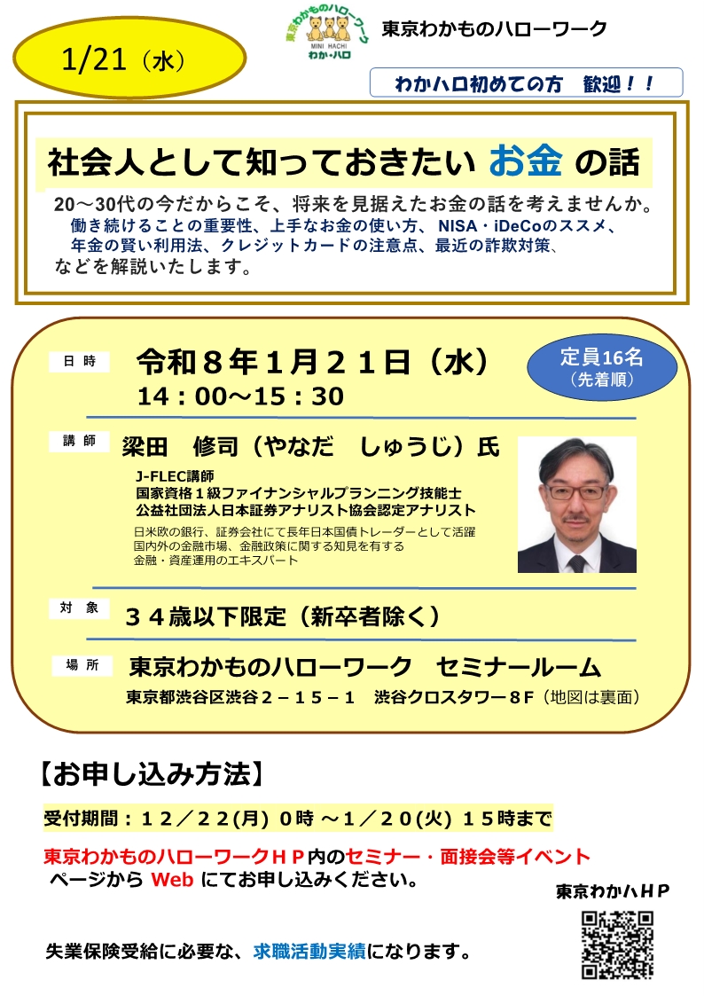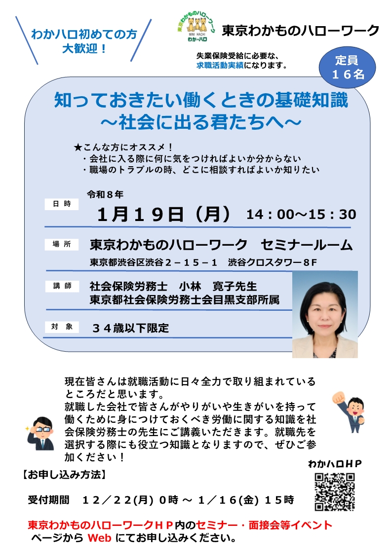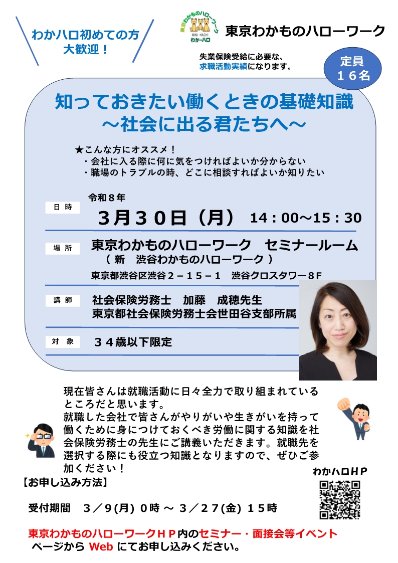 東京わかものハローワークにて開催するセミナーのご案内です。