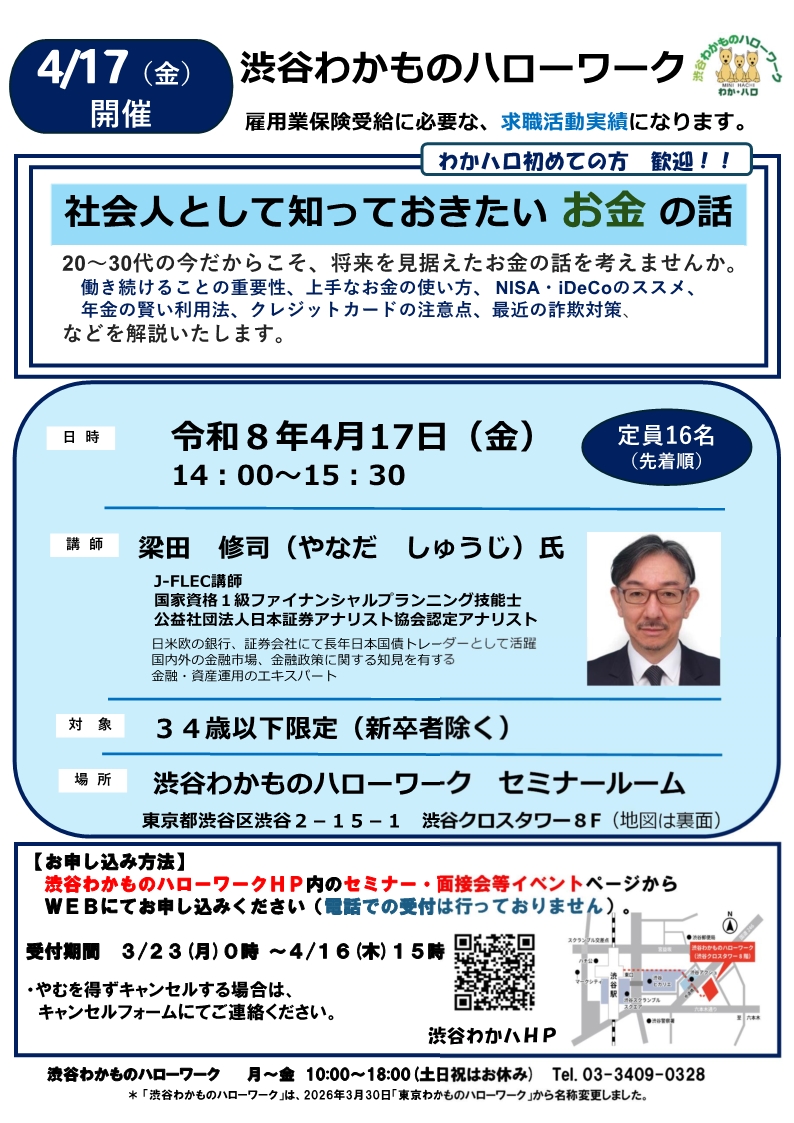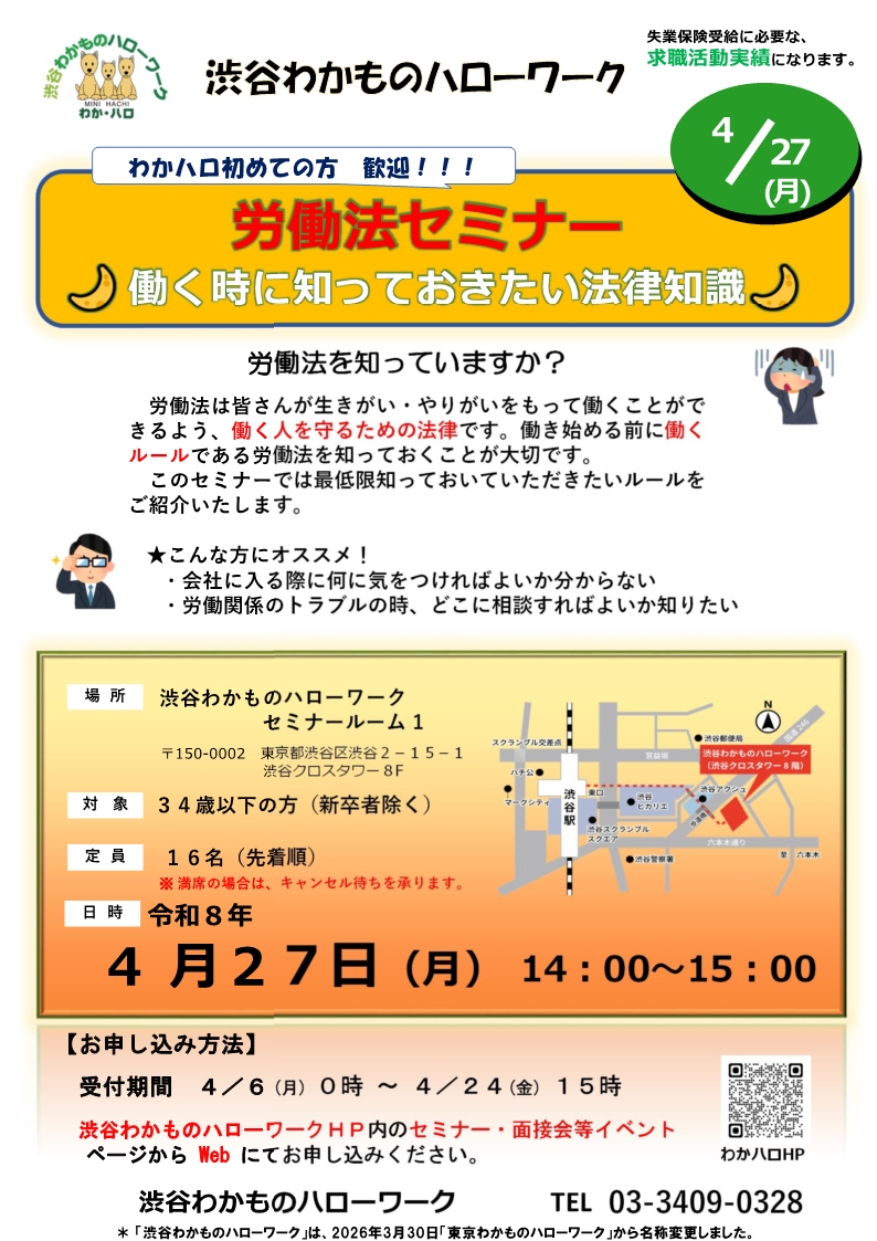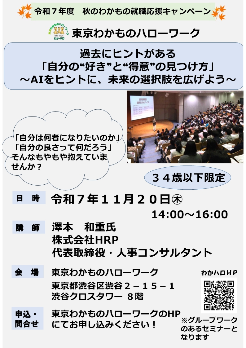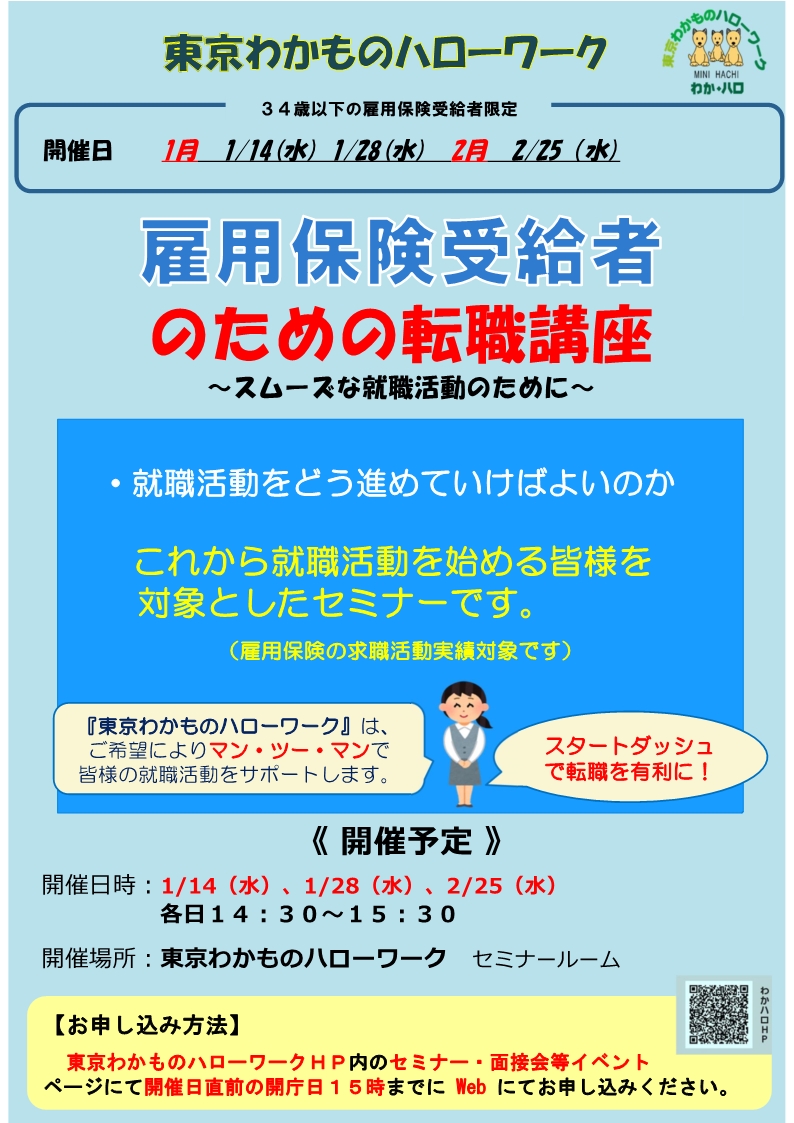 東京わかものハローワークにて開催するセミナーのご案内です。