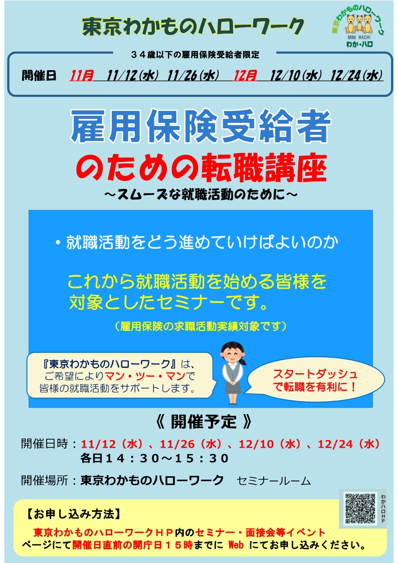 | 雇用保険受給者のための転職講座 | 12/10㊌ | 11/17~12/9 | |