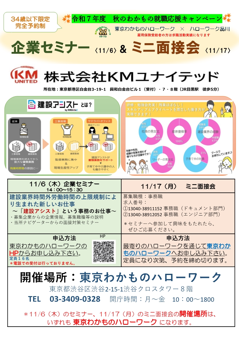 11月17日㊊:株式会社KMユナイテッド 11月6日開催の企業セミナーは予約受付終了いたしました