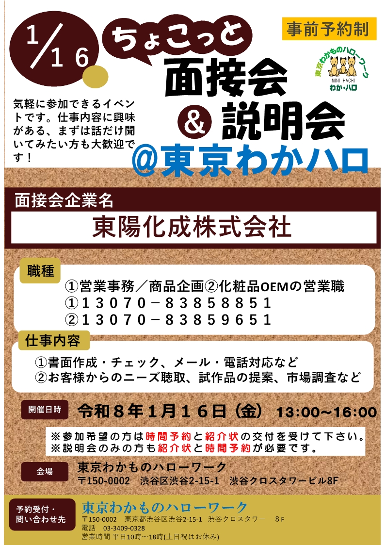 1月16日㊎:東陽化成株式会社【ちょこっと面接会】