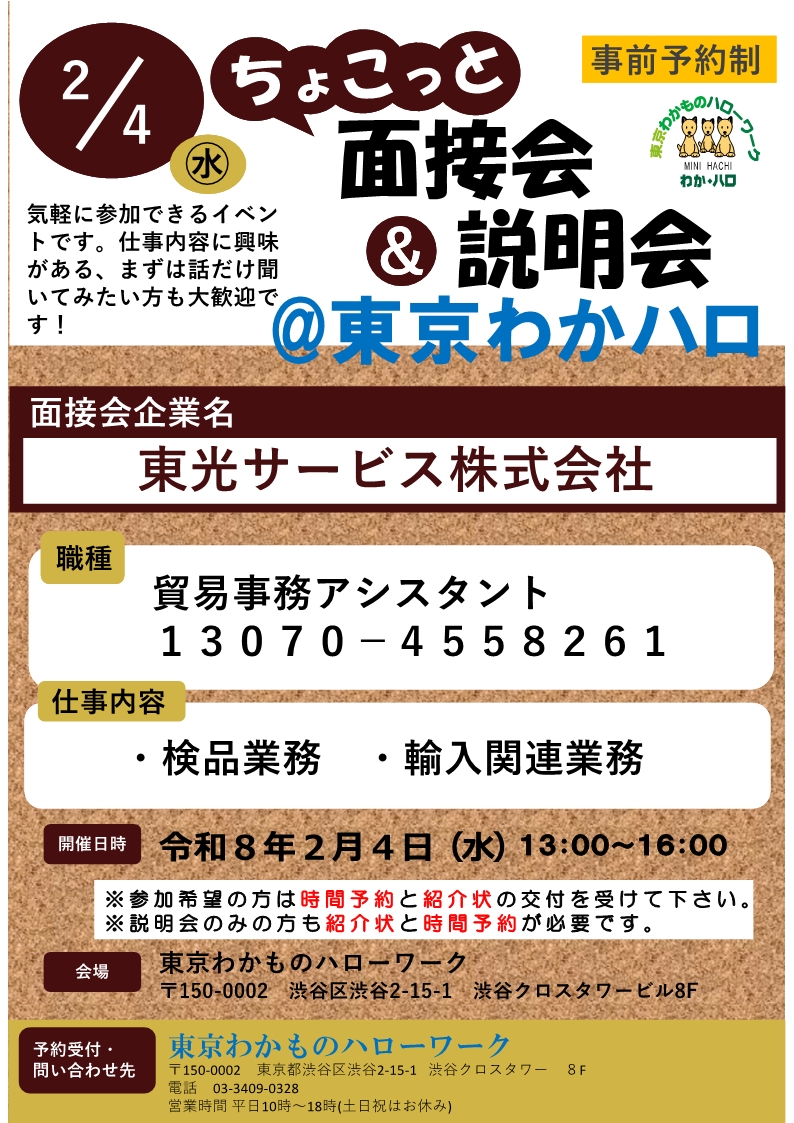 2月4日㊌:東光サービス株式会社【ちょこっと面接会】