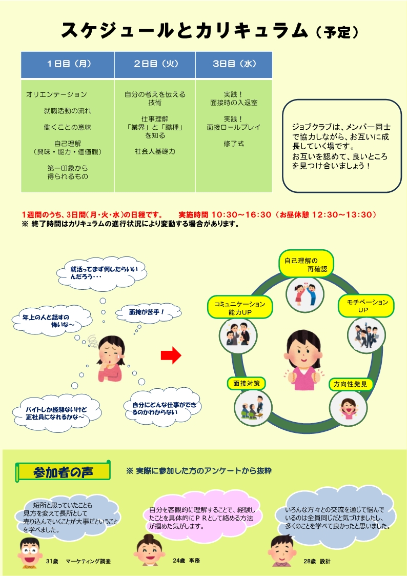 ほんの一部ですが【ジョブクラブ参加者からのメッセージ】にてご紹介していますので、ぜひご覧ください。
