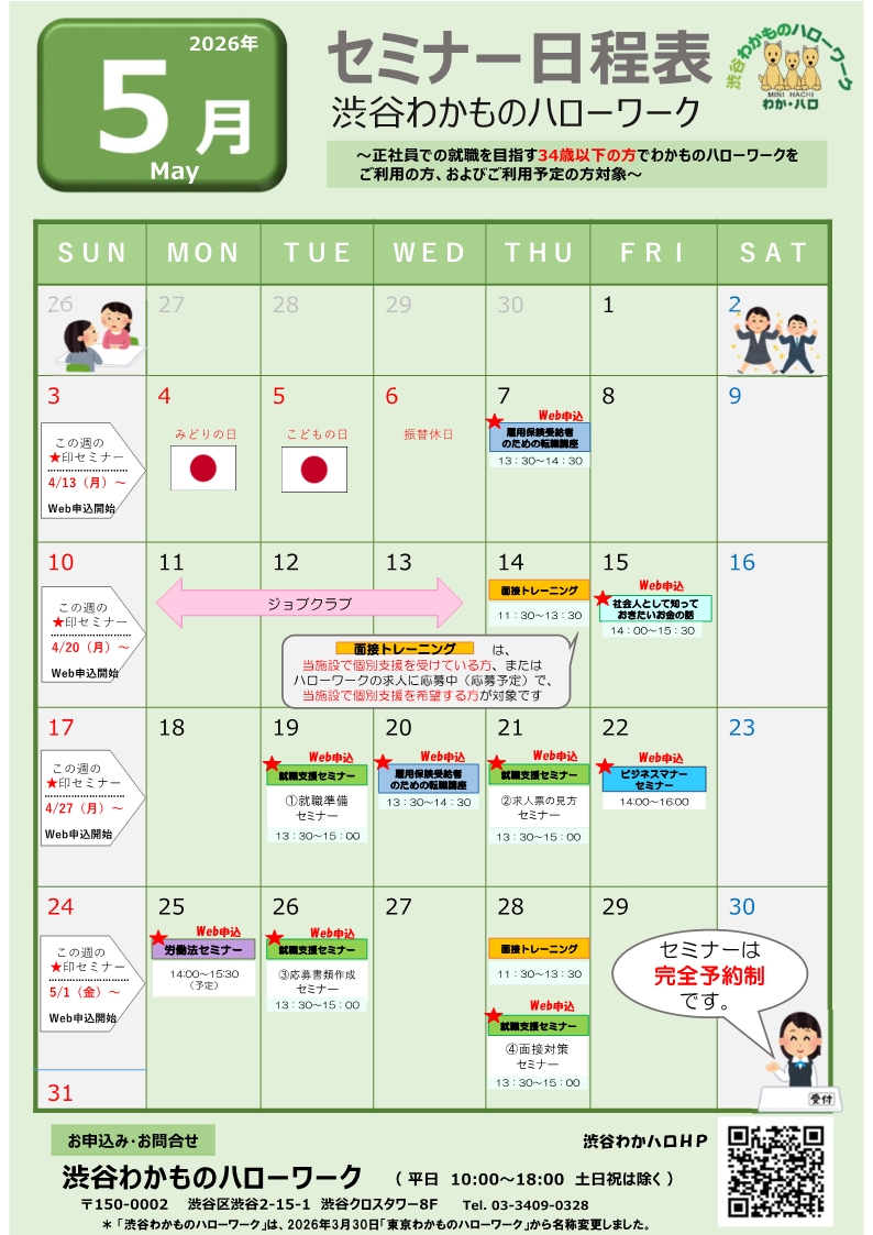 渋谷わかものハローワークにて開催するセミナーのご案内です。