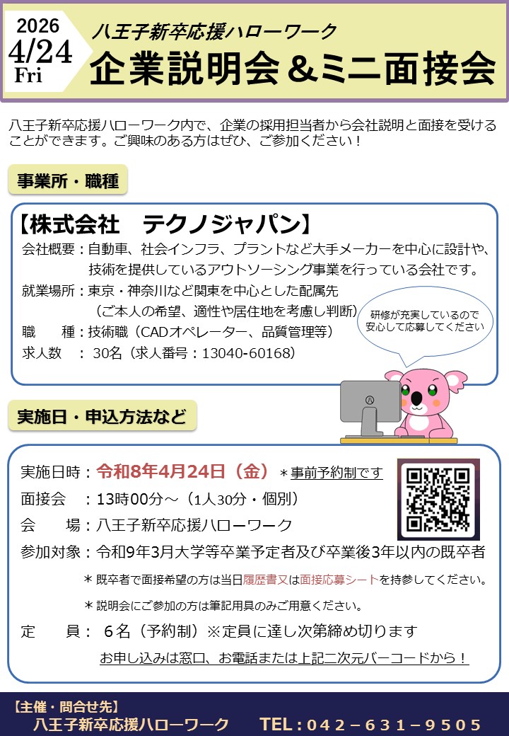 - 令和8年4月24日(金)株式会社テクノジャパン 企業説明会&ミニ面接会