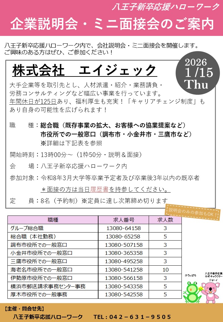 - 八王子新卒応援ハローワーク >