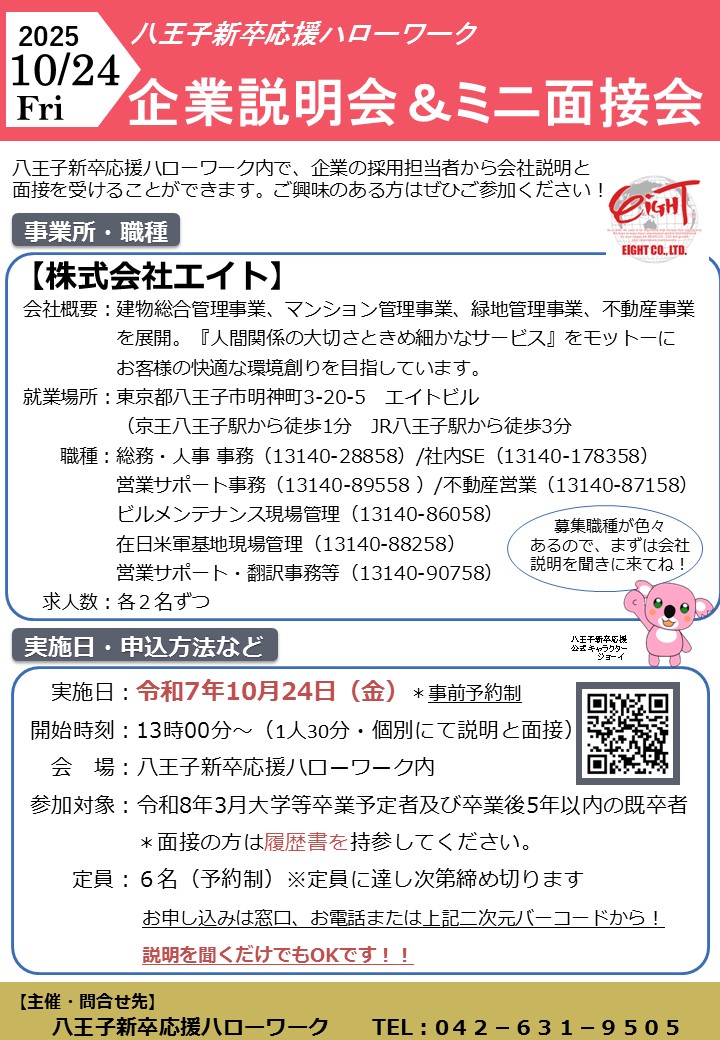- (株)エイト会社説明会&ミニ面接会(10/24開催)
