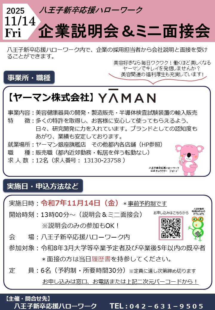 - 会社説明会&ミニ面接会 ヤーマン株式会社(11/14開催)