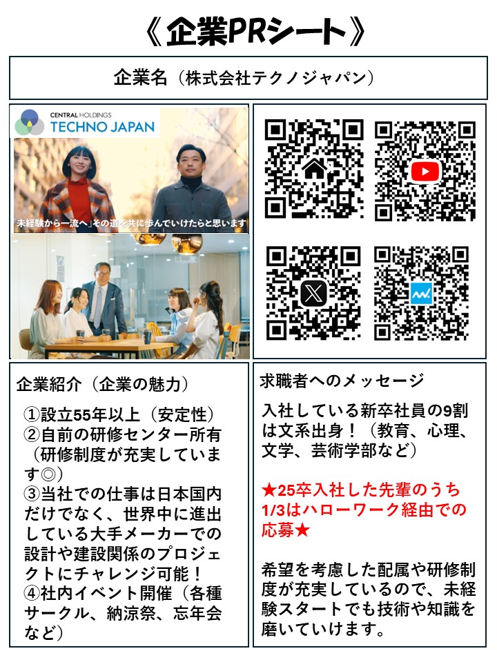 - 株式会社テクノジャパン 会社説明会&ミニ面接会(1/21開催)
