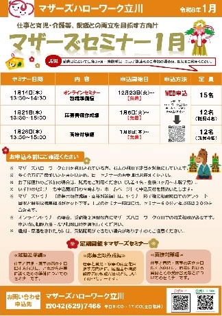 面接対策編 | 12月2日(火)9:00~ | 託児ありの方…申込はこちらから 託児なしの方…申込はこちらから |