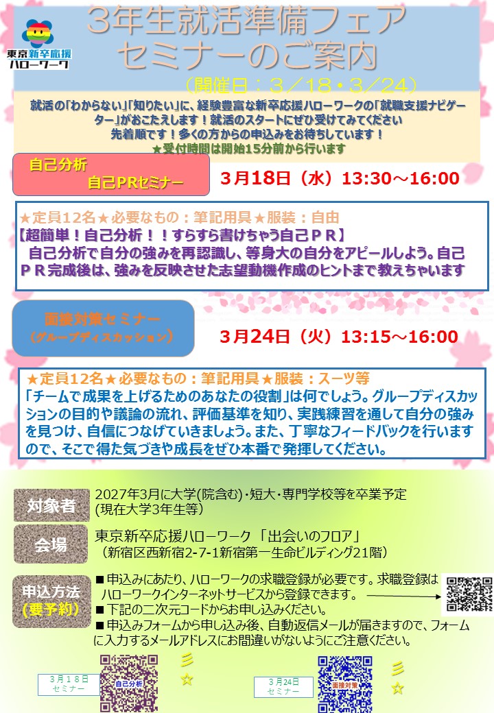 - 3年生就活準備フェア 自己分析 自己PRセミナー(3月18日)