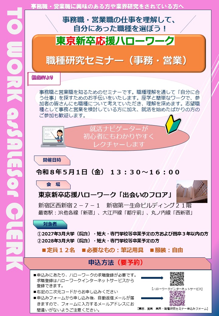 - 職種研究セミナー事務・営業(5月1日)