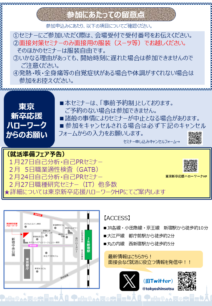 3就活セミナー参加にあたっての注意事項について