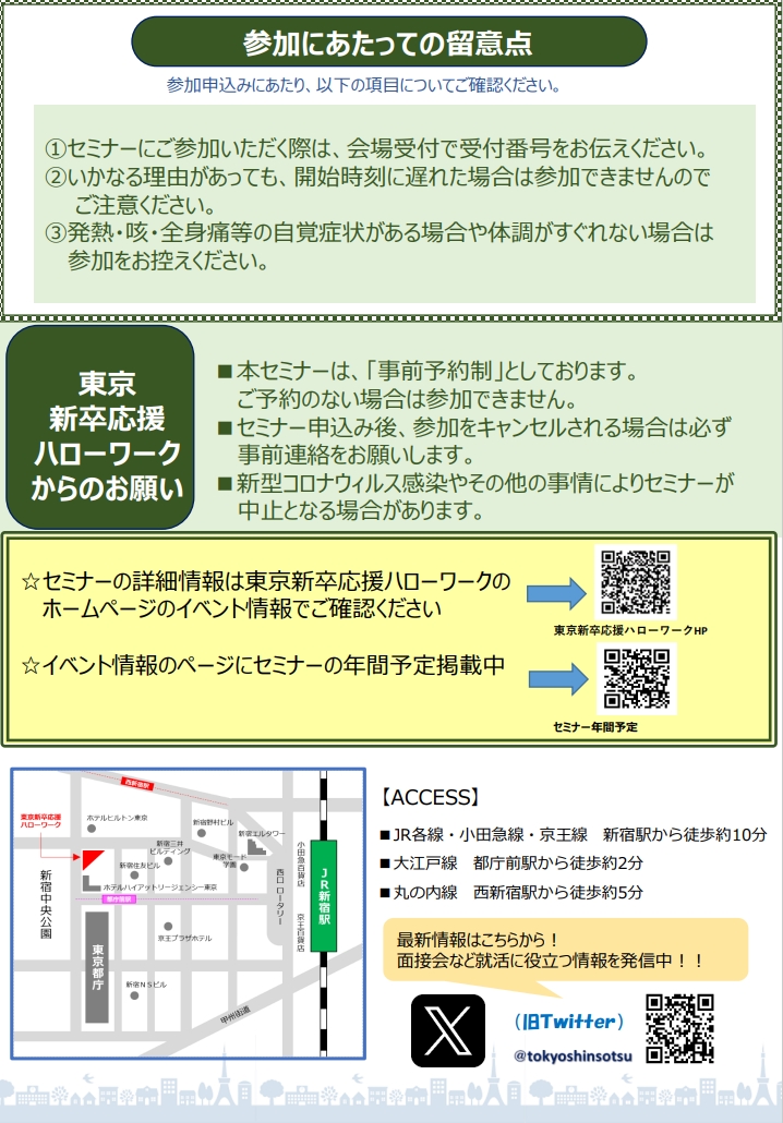 - 東京新卒応援ハローワーク 「出会いのフロア」(新宿区西新宿2-7-1新宿第一生命ビルディング21階)
