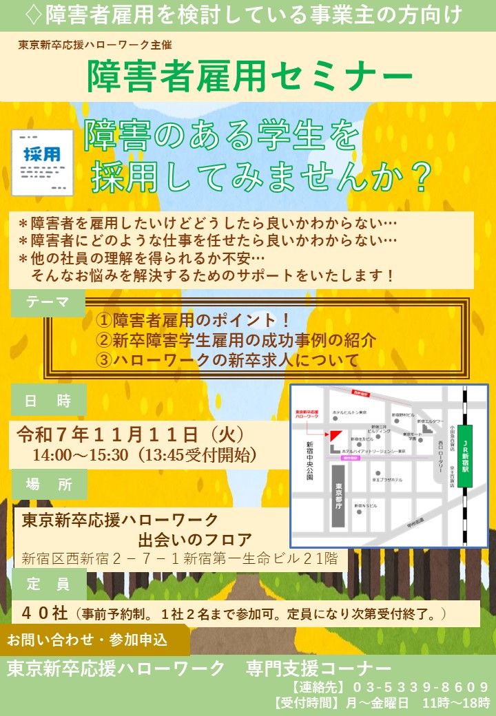 - 障害者雇用を検討している事業主の方向け障害者雇用セミナーのお知らせ(2025年11月11日)