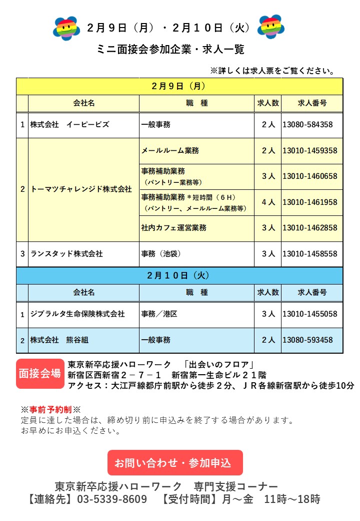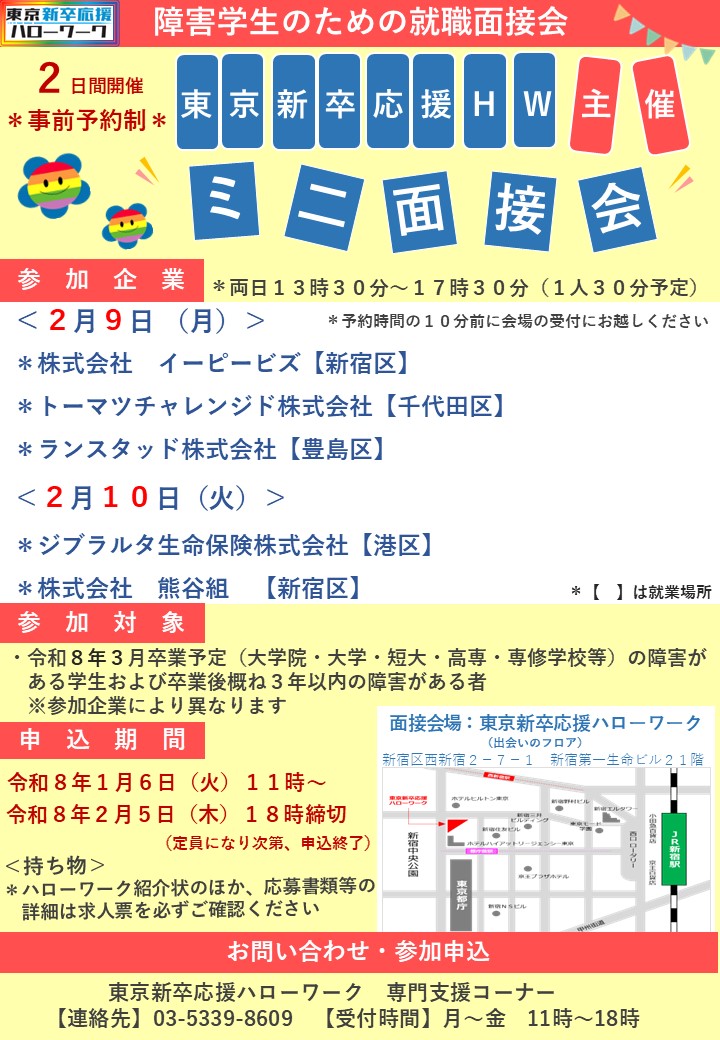 - 障害者向けミニ面接会のお知らせ(開催:令和8年2月9日・2月10日)