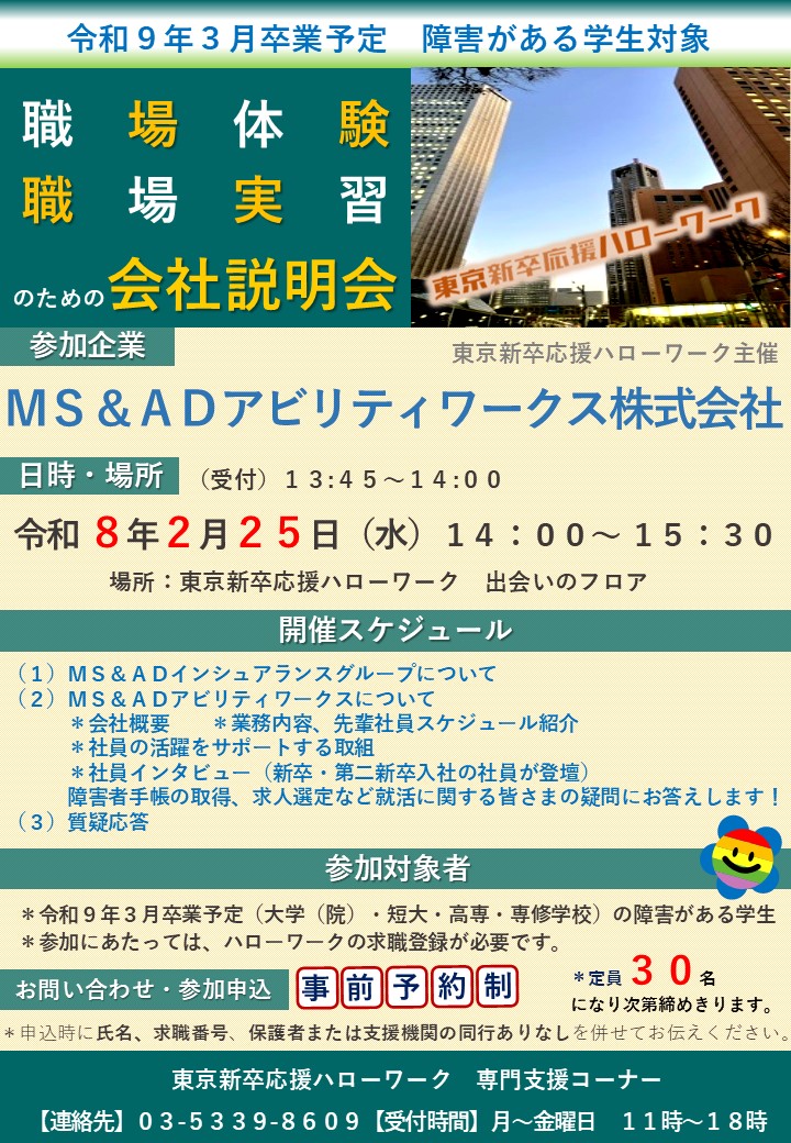 - 障害者向け【令和9年3月卒業予定者対象】職場体験・職場実習のための会社説明会(2月25日)