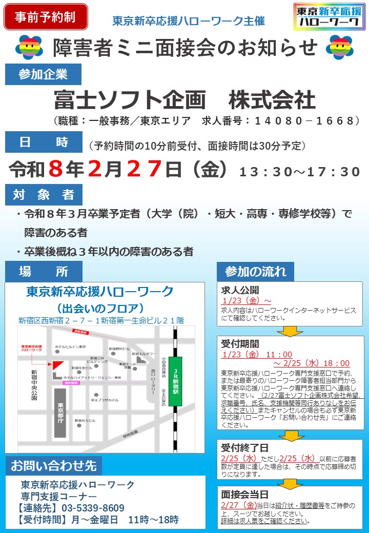 - 障害者向けミニ面接会のお知らせ(開催:2月27日)