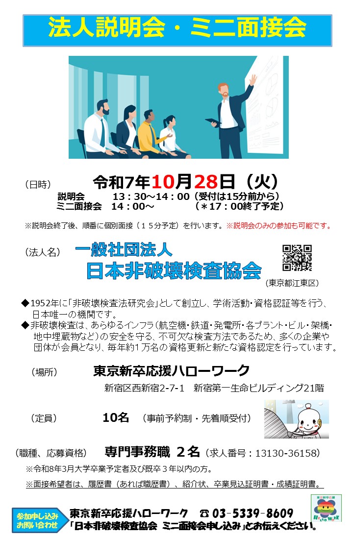 - 一般社団法人 日本非破壊検査協会法人説明会・ミニ面接会のお知らせ